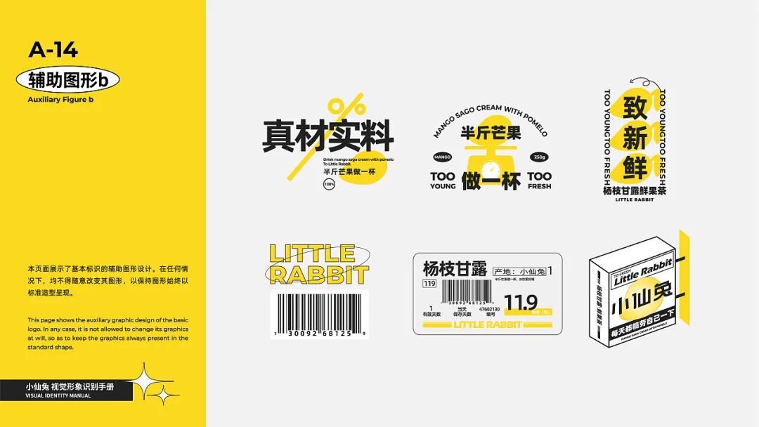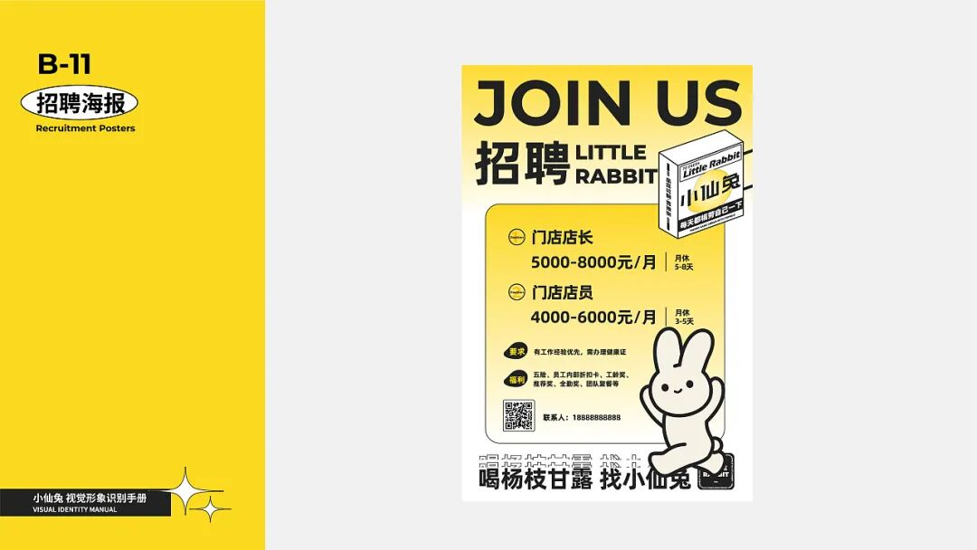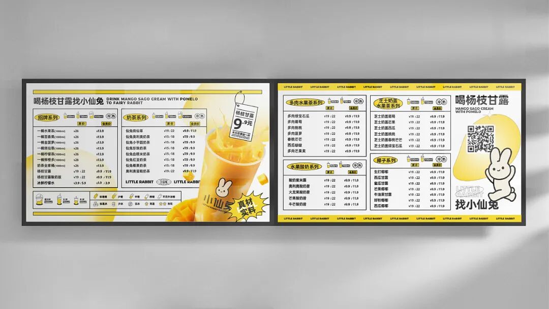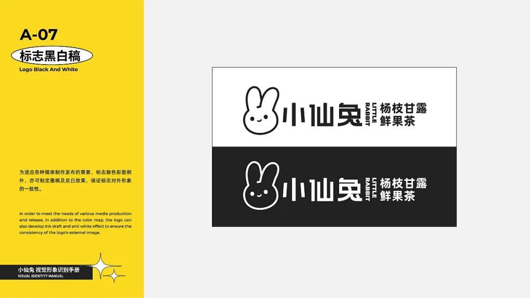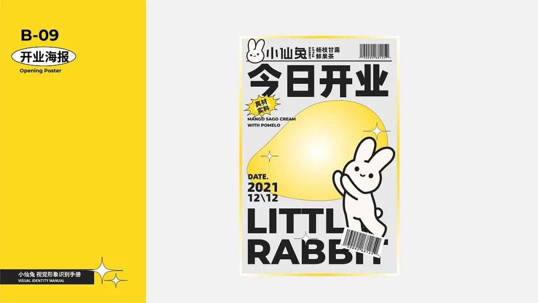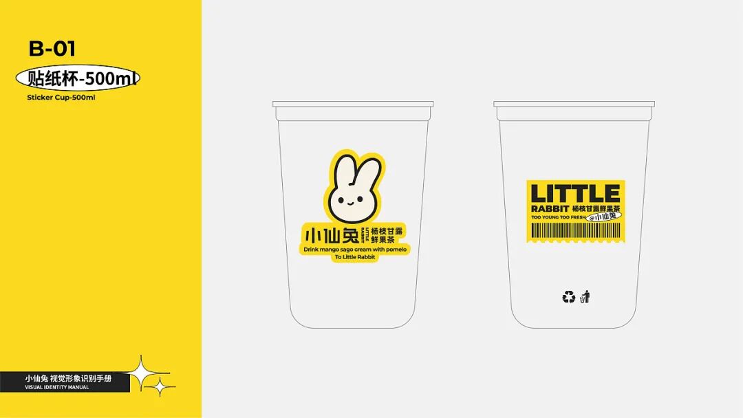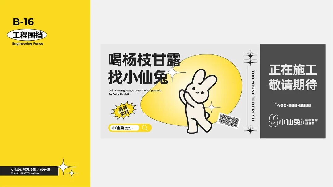 整体设计以简约潮流为主,可爱呆萌面无表情的小兔子为主要形象,增加视觉记忆点。并拟定了“每天都犒劳自己一下”的辅助语,每天都能喝的健康和每天都敢喝的价格,就是小仙兔广受好评的核心出发点。