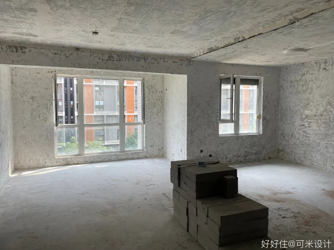 刚拆除结束的客餐厅空间,之前原本的隔墙拆除,实现客餐厅一体化,通透而明亮。