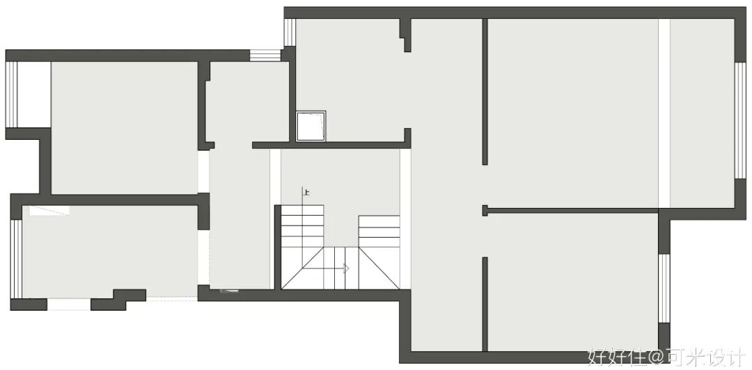 楼梯位置沿着入户的侧墙设置,让客餐厅的布局更加合理舒适,人的视觉和行动都有了缓冲,也使楼梯结构阳角被规整到空间边缘,作为各层之间的枢纽,安全和便捷是第一考量。