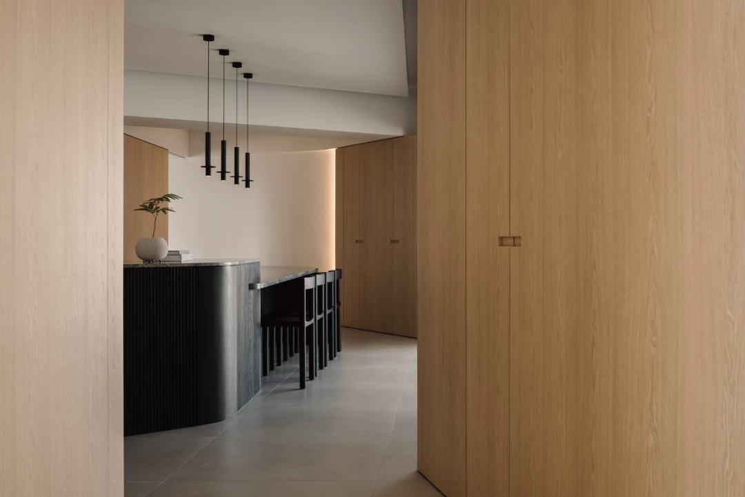 餐厅一侧也设置了足够的收纳体系,为极简的空间带来整洁。