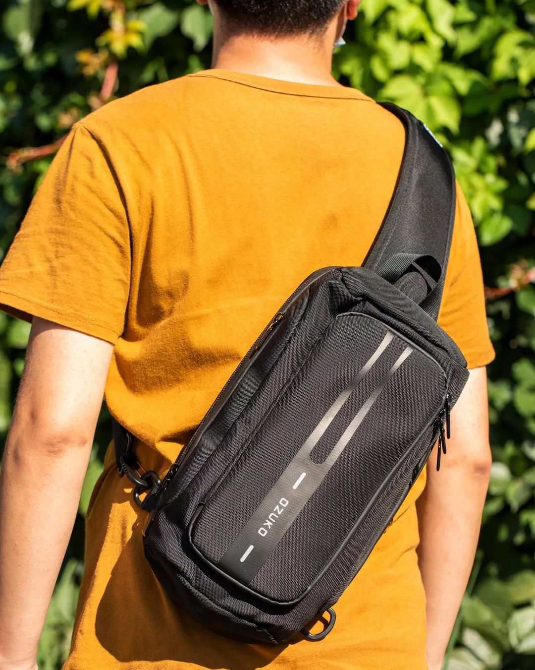 这个ozuko自锁巨能装挎包,有5个空间、19个口袋!不管是手机、ipad、笔记本这种大物件,还是耳机、笔、纸巾等零零碎碎,它都能装下。