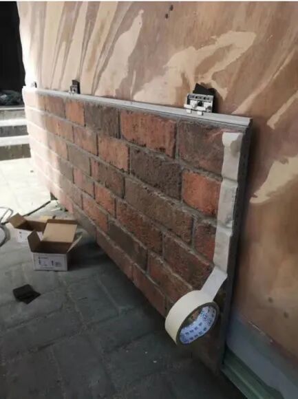 b、安装转角材:在阳角处安装转角材,通过专用胶将转角材与板材进行粘接。
