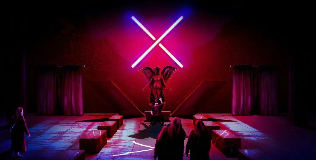 ▲赛博朋克教堂/赛博朋克寺庙的概念绘画,