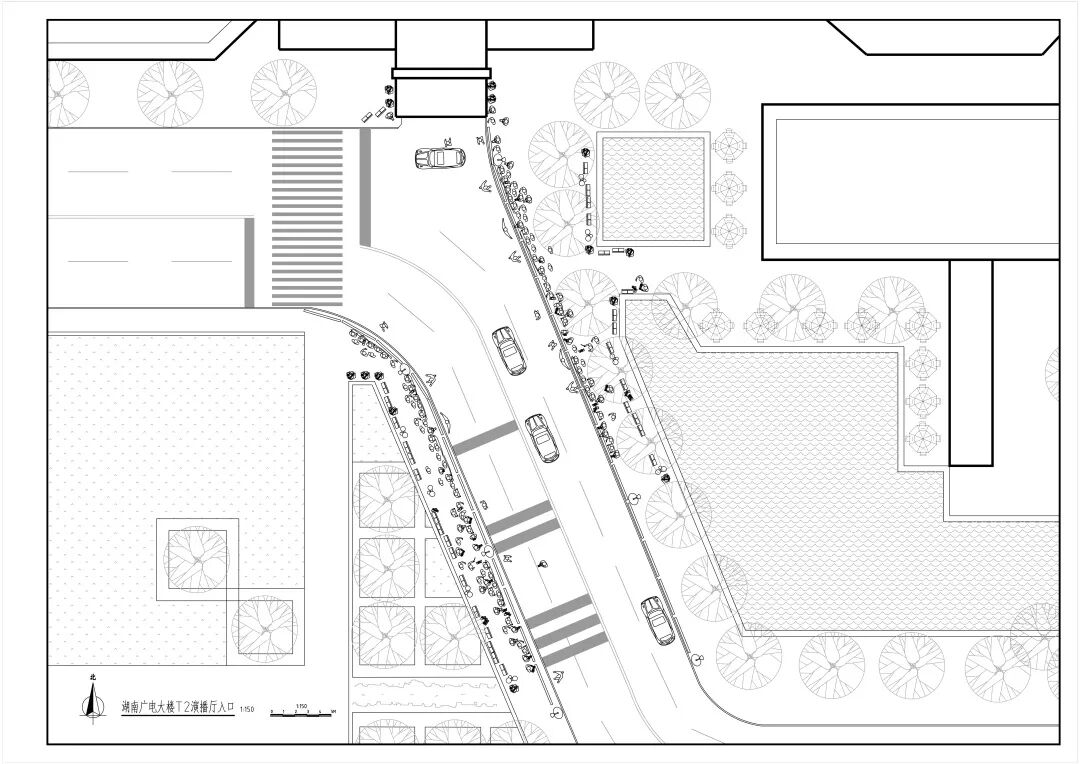 ▲湖南广X大楼T2演播厅前道路粉丝应援平面示意图