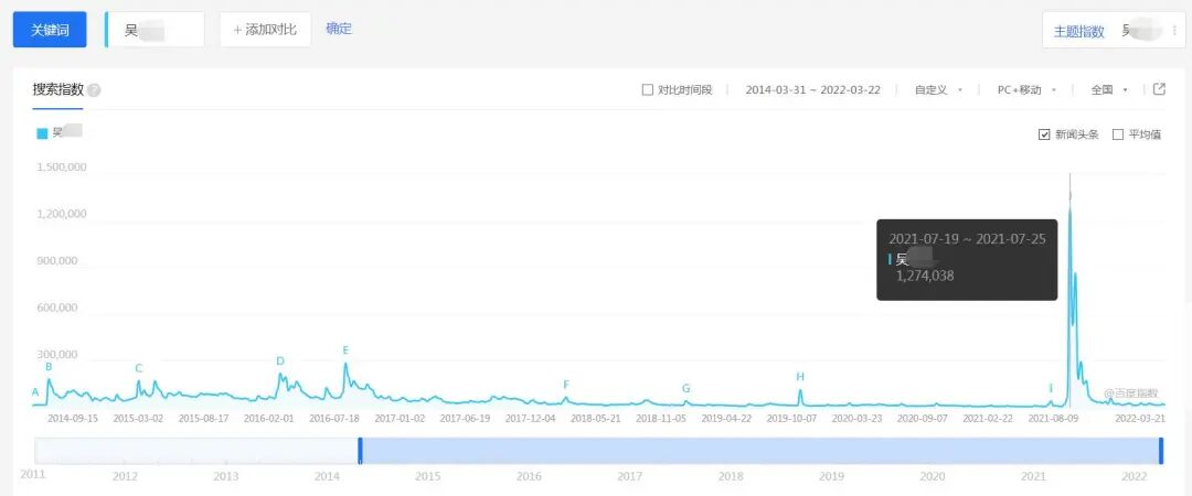 ▲“吴XX”搜索关键词的百度搜索指数时间变化