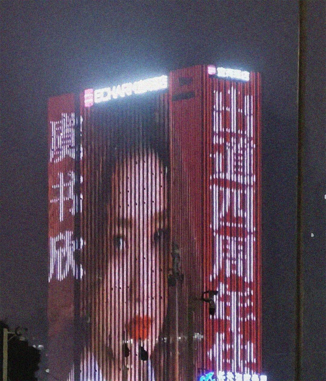 ▲虞XX粉丝为庆祝其出道四周年租用整座大楼立面为其应援