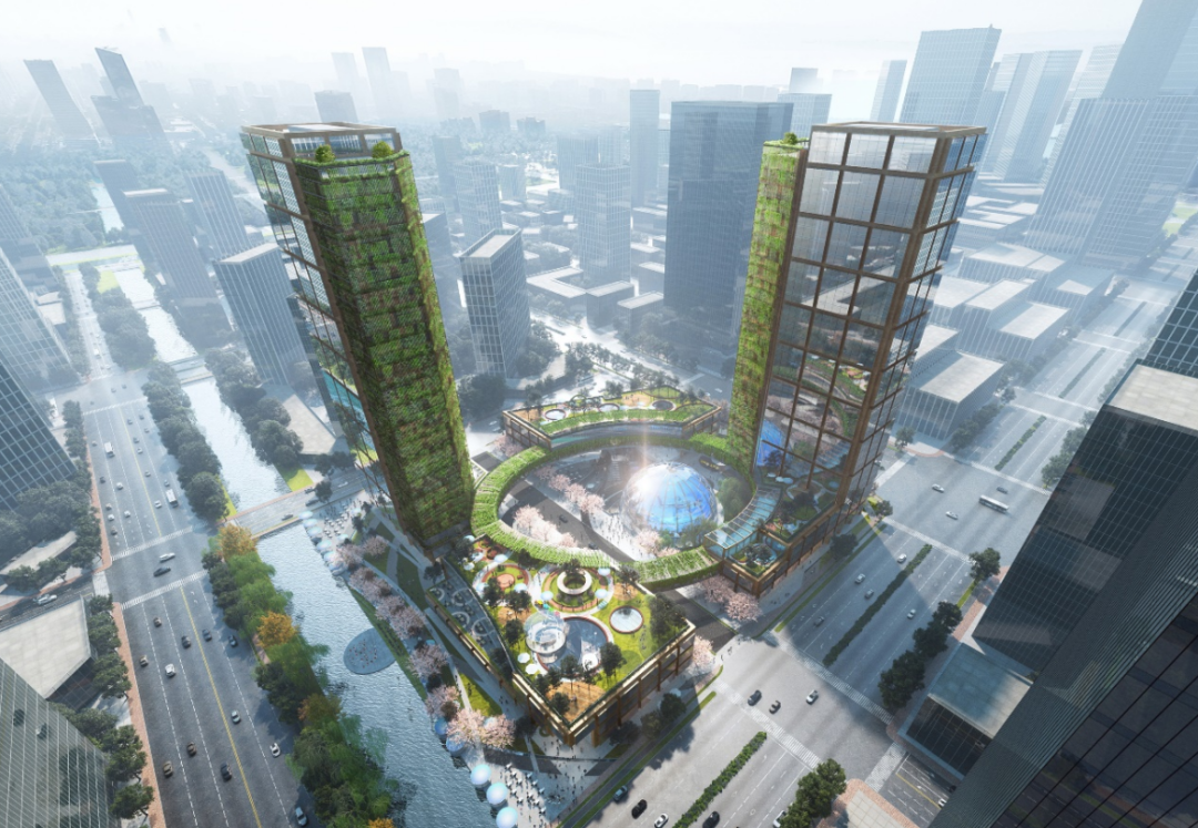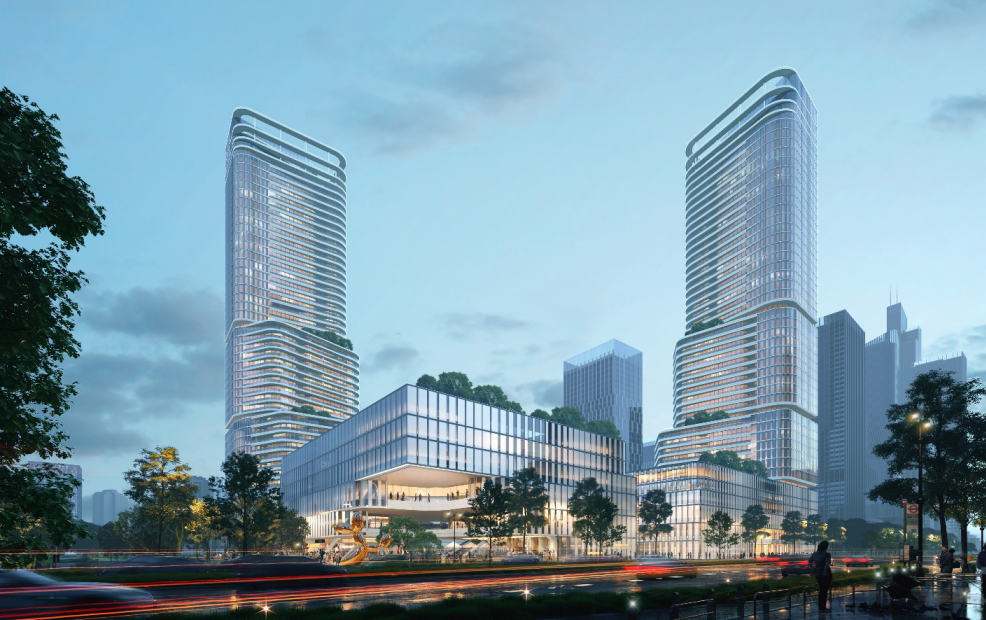 本次招标的新金融二期将有6座高层建筑,最高高度为350米,它们将和一期的建筑群共同组成江北新区的天际线。