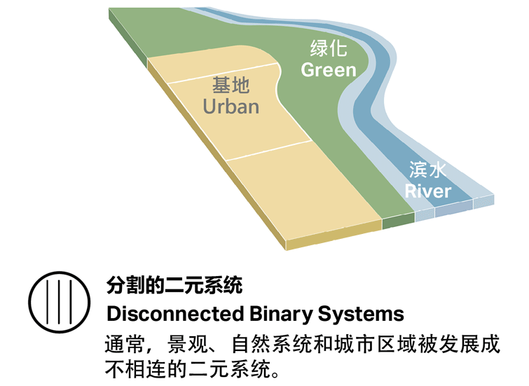 景观设计有意模糊了人为与自然生态系统之间的界限,使两者相互交织 —— 建筑的终点和景观的起点趋于融合。