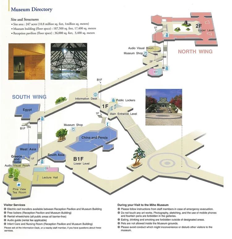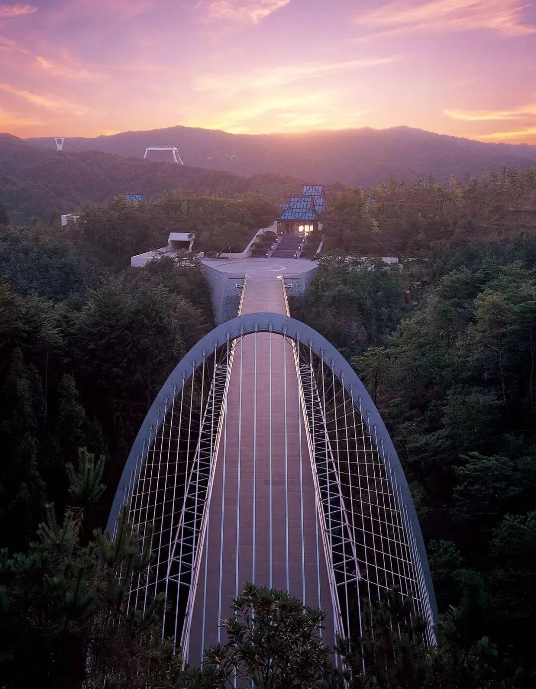 只有在爬过一个坡度平缓两旁的树木葱茏的坡路,穿过隧道,穿越桥之后才能发现美秀博物馆。