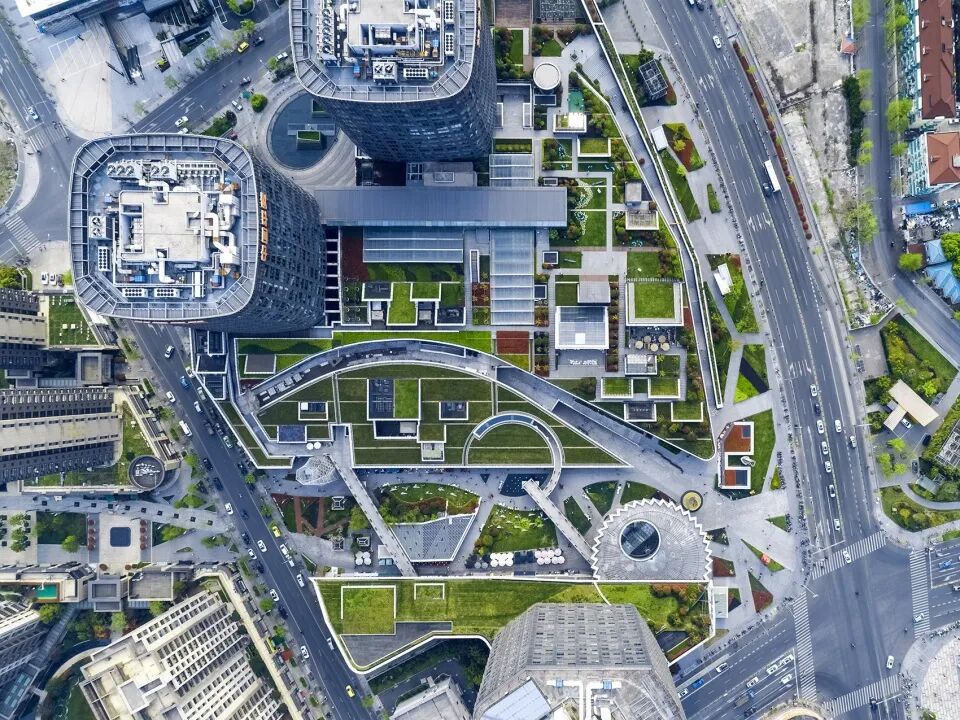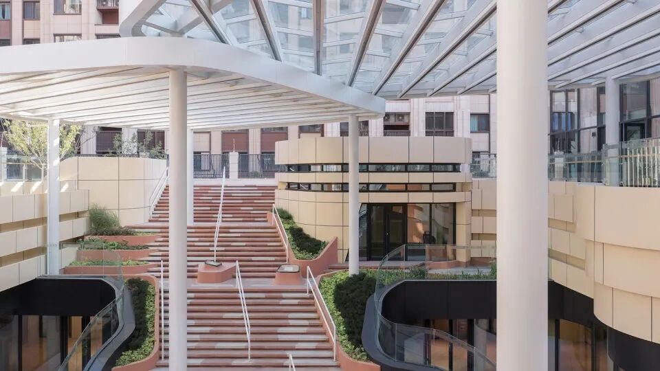 在上海最繁忙的地铁站之一的上方,坐落着一座城市绿谷综合体。作为项目最出彩的亮点,设计师将一条步道式的景观公园融入在了建筑空间之中。