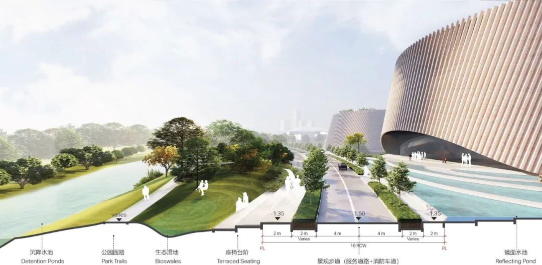 马岩松的设计理念是要让这座博物馆成为一个整体连续的场所体验,把周围的城市空间与环境融为一体,让博物馆成为人与自然相遇的大地艺术。