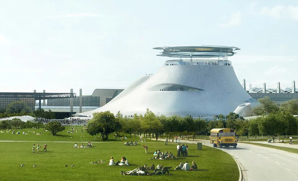 这座占地11英亩的博物馆被想象为某种超然世外之物,如一朵云一般漂浮在城市的上空,又像天幕一样笼罩着博物馆之下的公园,探索着自然和都市的关系。