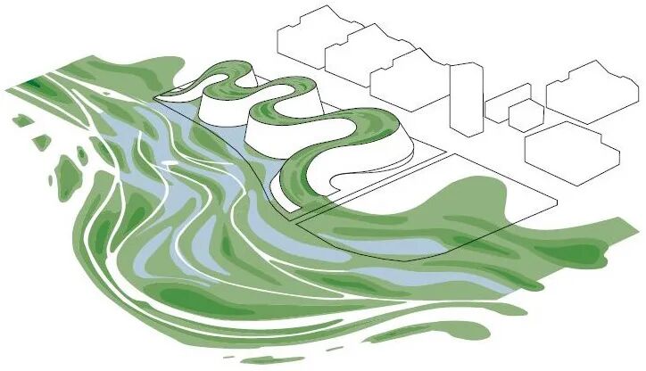 河流的运动极大地塑造了我们的自然环境。基于三角洲的总体设计概念,到达区的景观反映了不同形态的水流运动。