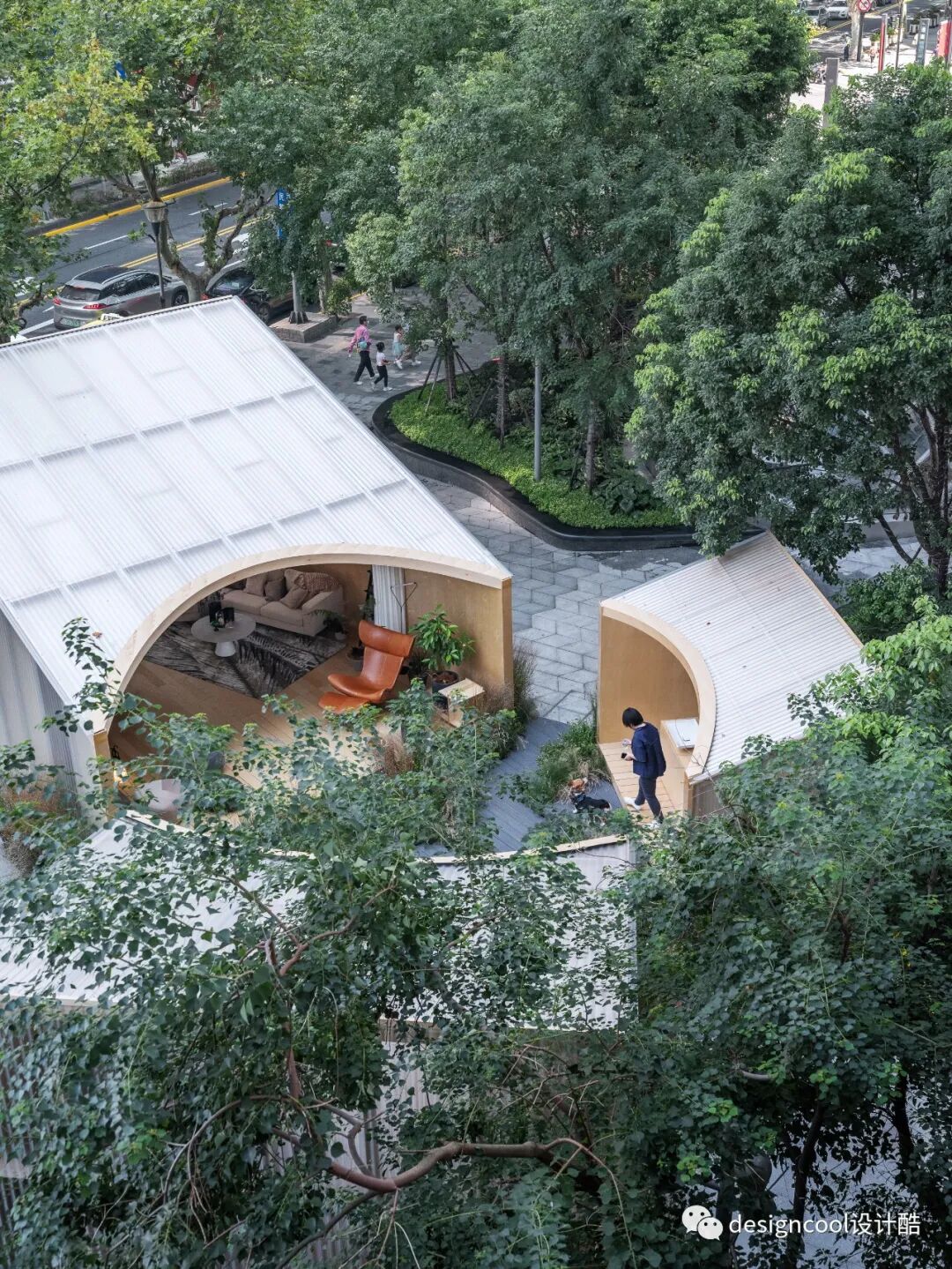 The shape of PARKLIFE is surrounding but not closing, which helps to reduce the noise of the outside world. When you sit down in Engawa space, the wind chimes ring in your ears, and the flowers and plants of the garden are simply at people's feet. Viewed from above, the various parts of the "house" are closely connected to the micro-park through the colonnade, as if "embracing" each other and giving comfort to the people.