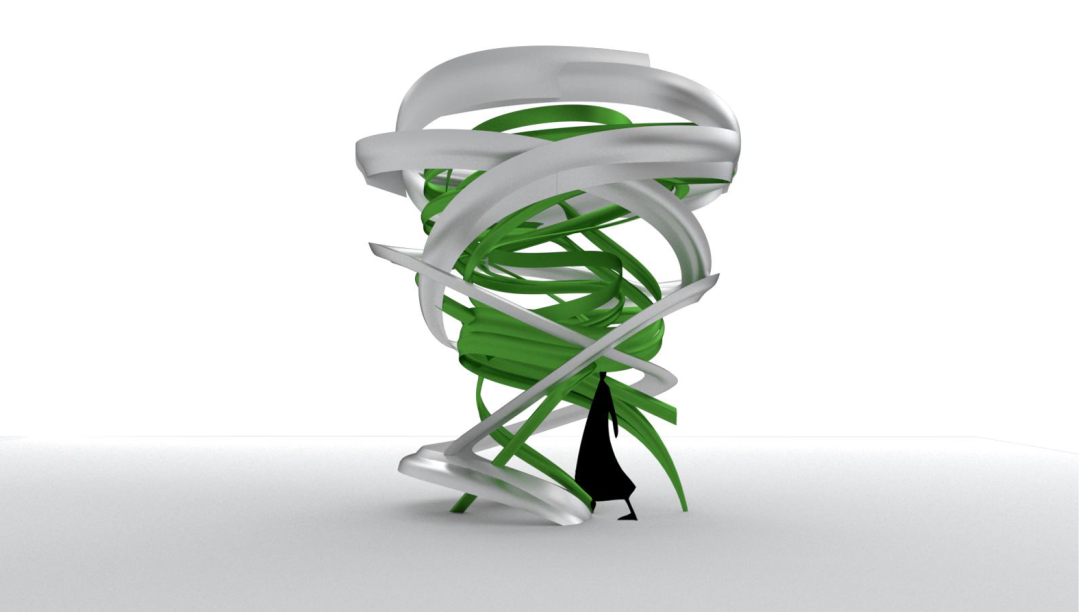 从结构层面来讲,“龙卷风”更像是一个“打样”(mockup)。这个打样不是说一个粗糙的样态,它毕竟是一个装置,我们要展示出它的互动性等方面。同时,你可以把它理解成一个精致的“能量”,它的体量比较小,将来如果做成一个更大的构筑物,或是把它的局部控制在一个建筑物上,都是有可能的。这是一种探索。