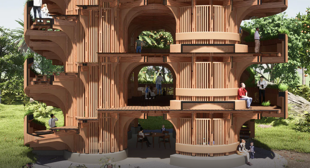 ▲斐波那契微型图书馆整体结构渲染图 © SHAU