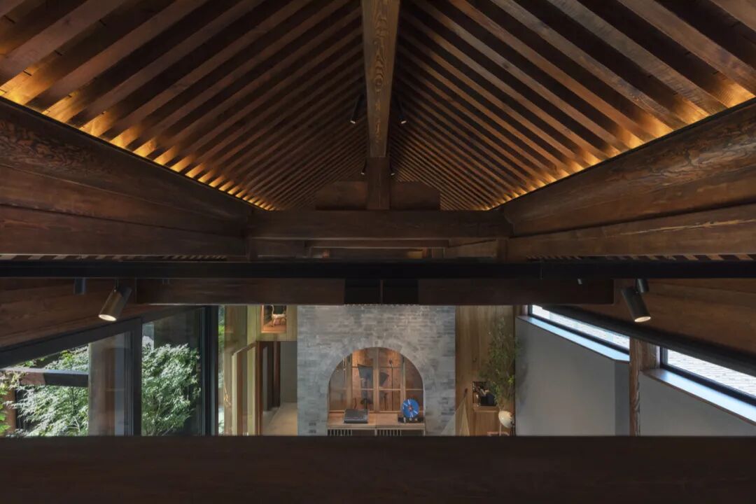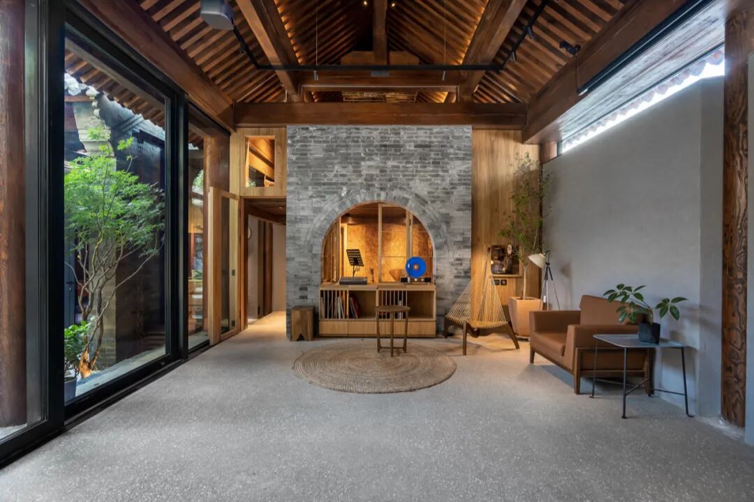 改造花费两年时间。一个东西走向的院落建成了,有北方古建的样貌。走进院子,西房与北房贯通,呈L型,拥着长方形的庭院。室内一层是公共空间,二层的三个阁楼更加私密。
