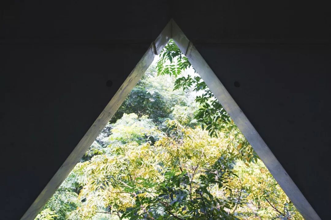 院子的总面积约880㎡。毛舍的主体是一栋呈正三角形的清水混凝土建筑,共四层,每一层的面积都是递减关系:地下室40坪(133㎡),一层30坪(99㎡),二层20坪(66㎡),三层10坪(33㎡)。