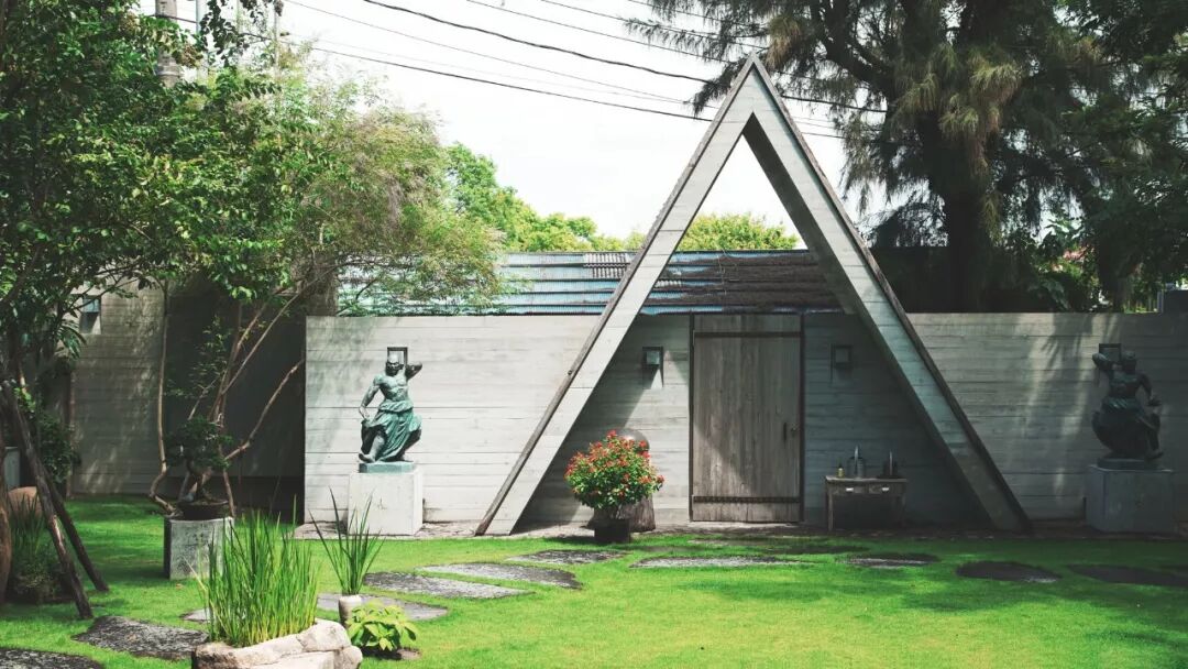 2013年,毛森江在台南的一个小岛上买了地,花6年时间,打造一个属于自己一个人的“私人乐园”,院子880㎡,有一栋三角形的房子,取名“毛舍”。他几乎每天都会来到这里,一个人看书、喝茶、喂鱼,休息够了就离开。