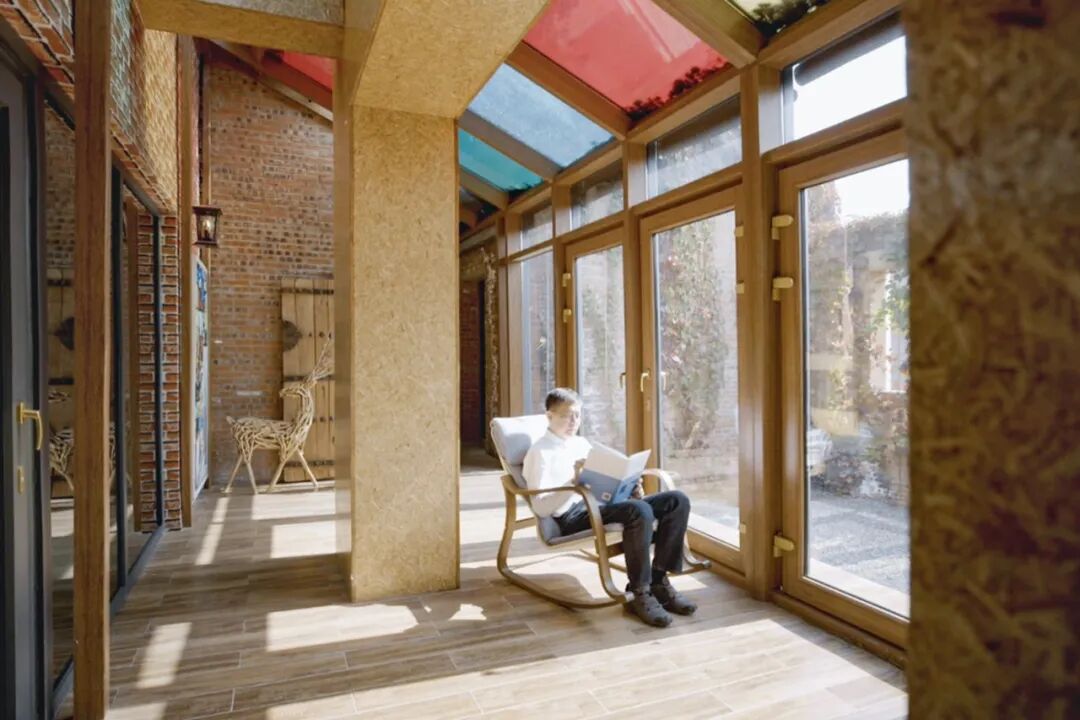 内里则做成了一个低能耗小屋:采光好,保温牢靠,不漏风,室温恒定在23℃上下,湿度50%,耗电量是一般空调住宅的1/5左右。这是一处获得“PHI欧洲被动房设计认证”的低能耗建筑。
