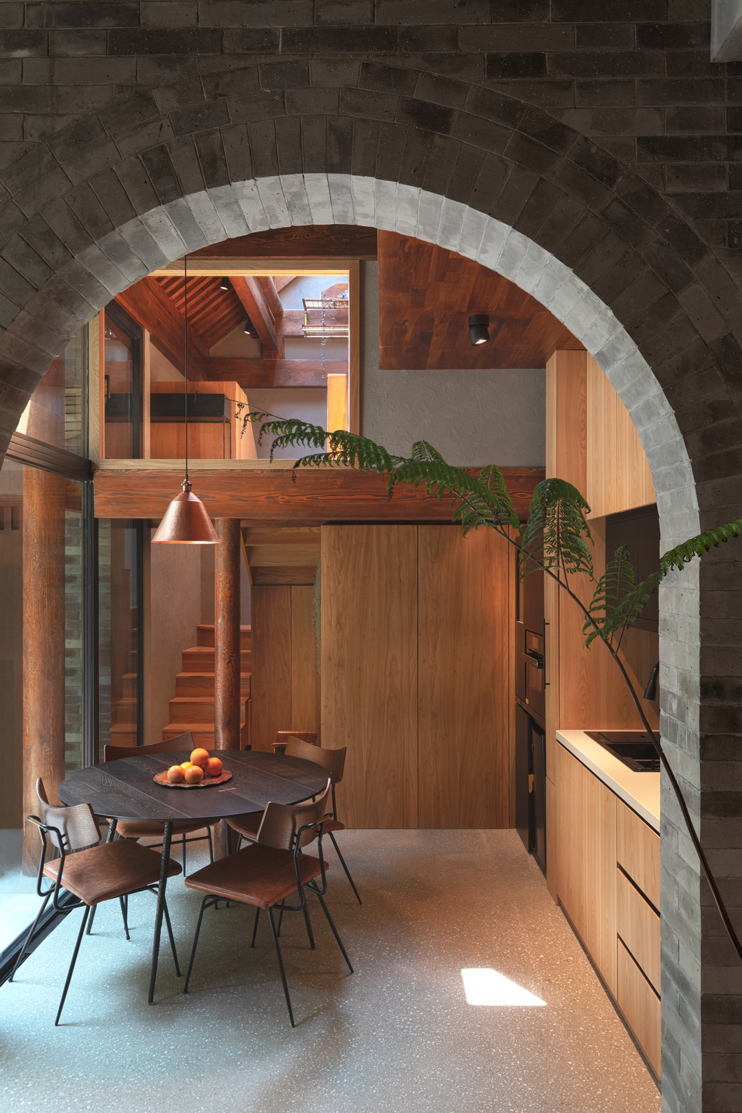 拆掉曾经的铁板墙隔断,换成拱券墙,由回收的旧砖砌成