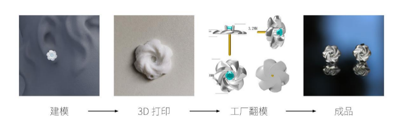 在对接过程中,我们发现前期的建模渲染帮我们节约了很多沟通成本。一般珠宝设计师会给工厂提供手绘稿,如果能提供模型的话,工厂的师傅建模时会更加精确省时(SU/RHINO小工的优势)。于此相对的,珠宝设计师会更了解各类珠宝玉石和贵金属呈现的效果及镶嵌工艺,而建筑师在这块会有所欠缺。
