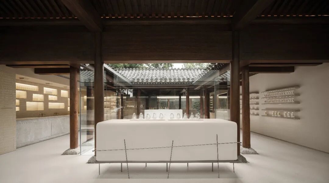 湖南路店和国子监店又比较特殊,他们一个是上海旗舰店,一个是北京旗舰店,本身是对老建筑的“侵入”,把一个民居/大宅院重新转化成可以被当代年轻人所喜欢的商业空间。这个商业空间对于街道来说又是很重要的公共空间,具有很强的公共性。如何让这个空间更加轻盈?如何让东方美学展现出新的态度?设计的愿景需要是当代的,年轻的。