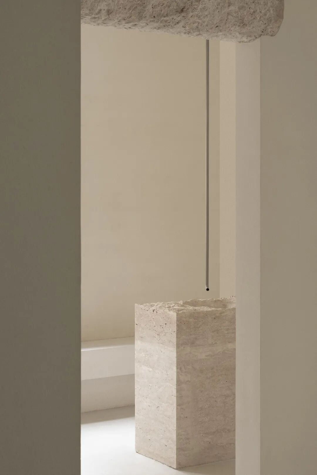 我们用了一种很老套的设计手法,就是园林中所谓的“移步换景”和“框景”。具体落实下去的时候比较有意思的就打磨的过程。你去那个空间的话,会发现基本上没有一个墙体的门框是一样的,要么是门框本身不对齐、大小有变化,要么是梁高有的藏到了天花里、有的故意降下来;有些梁我们换成了很粗糙的质感,有一些保持了原有的拱门形态;有一些拱门是干净的,有一些是有雕花的。