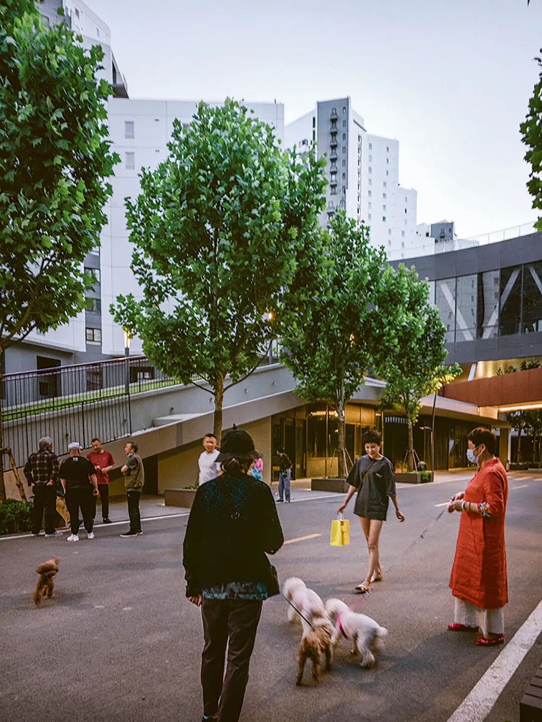 现在地块中新一层级的街道和沿街空间都不是业主要求的。我们也非常清楚,底下这一层空间绝不是靠小区内部能够消化掉的。但我们说服业主,这些空间可以用很低的租金租给文化组织、书店或者共享办公,也就形成了现在您看到的状态,有很多空间他们还不知道怎么使用。但既然这些空间已经存在,他们就总会想办法去使用,这只是时间的问题。尽管管理者、运营者、包括很多住户都不理解,大家的观念不统一,可能运营初期还会有问题,但我还是坚信这些空间是积极的。商业被引入,会吸引更多外面的人来到这里,这样住户就会觉得自己是城市生活的一部分。中国的商业区、住宅区往往分得很清楚,如果在纽约,你会发现它们都是融合在一起的,人们住在某个街区,在楼下咖啡馆看看书,跟邻居相识,这就是他们的生活。这种融合就是我们想做开放社区、引入街道和商业的目的。我觉得“体面”也是由此而来,就是所有人享用一样的生活。