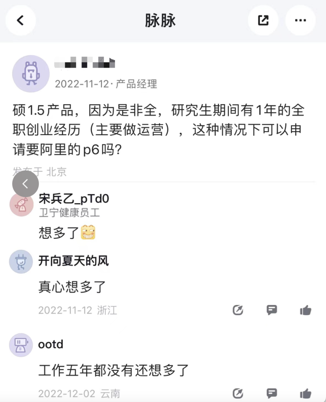 图 / 在脉脉咨询是否能拿p6被嘲讽