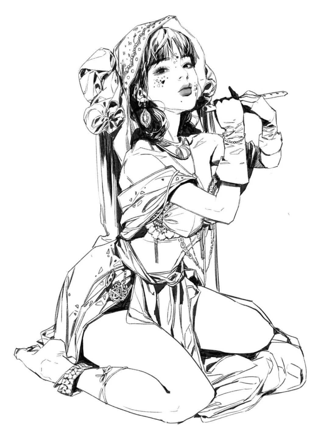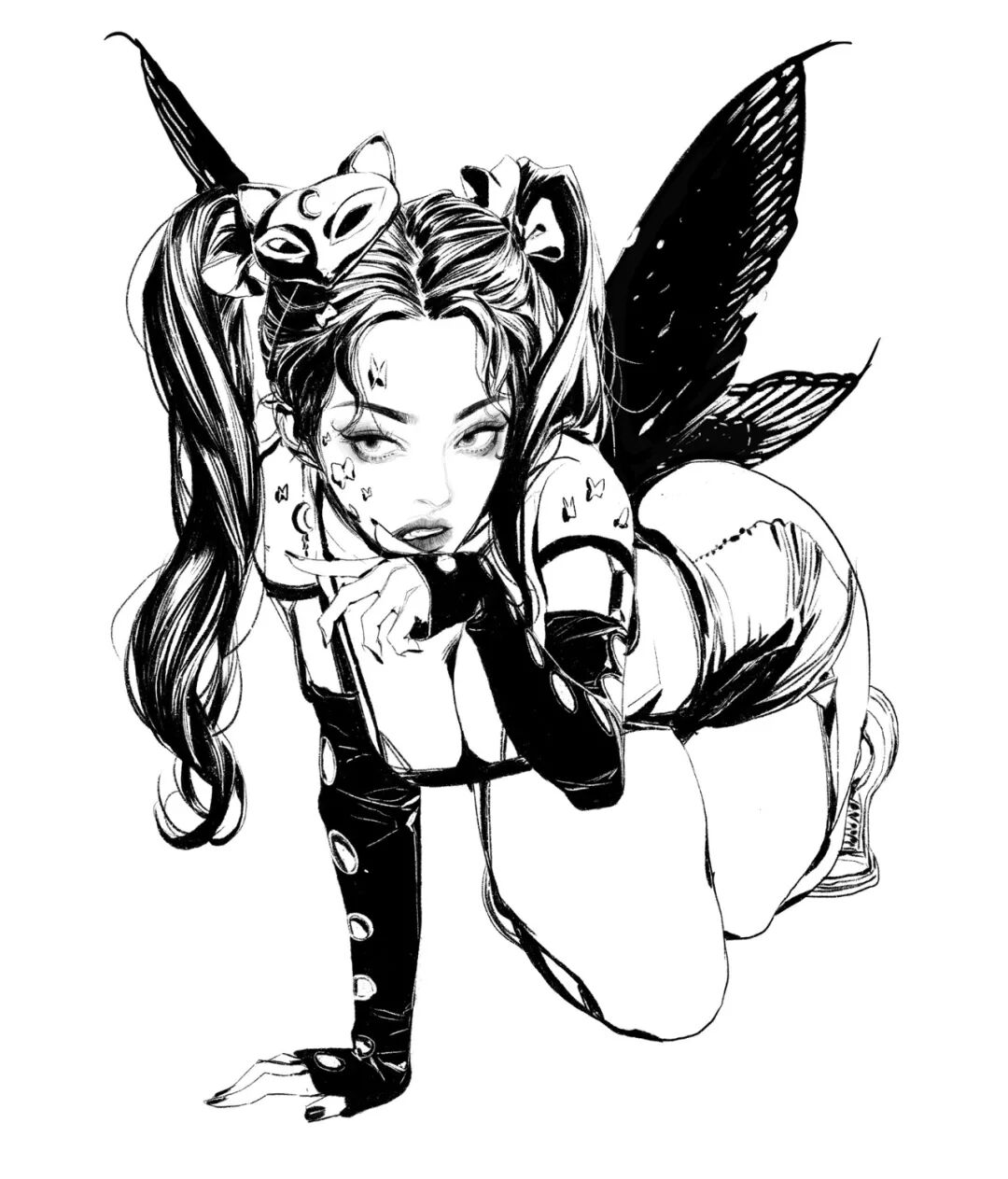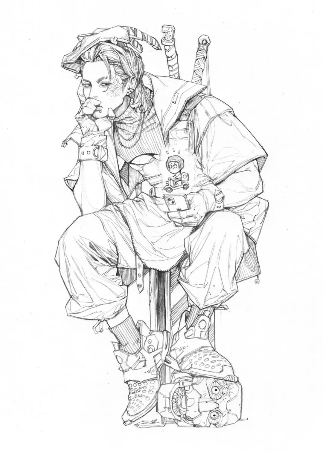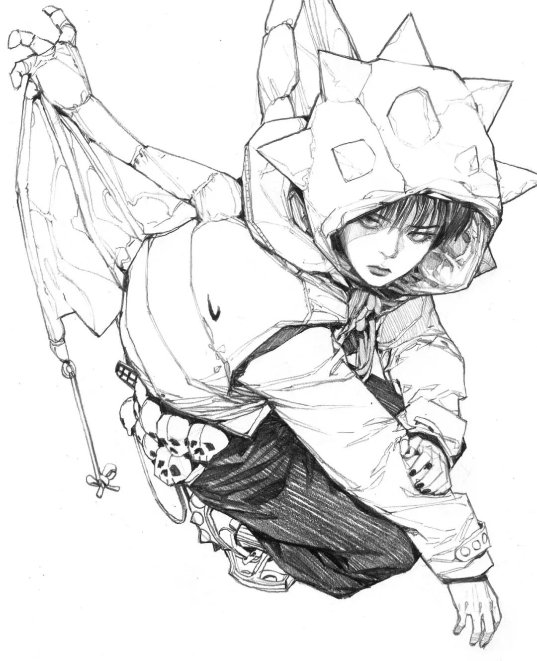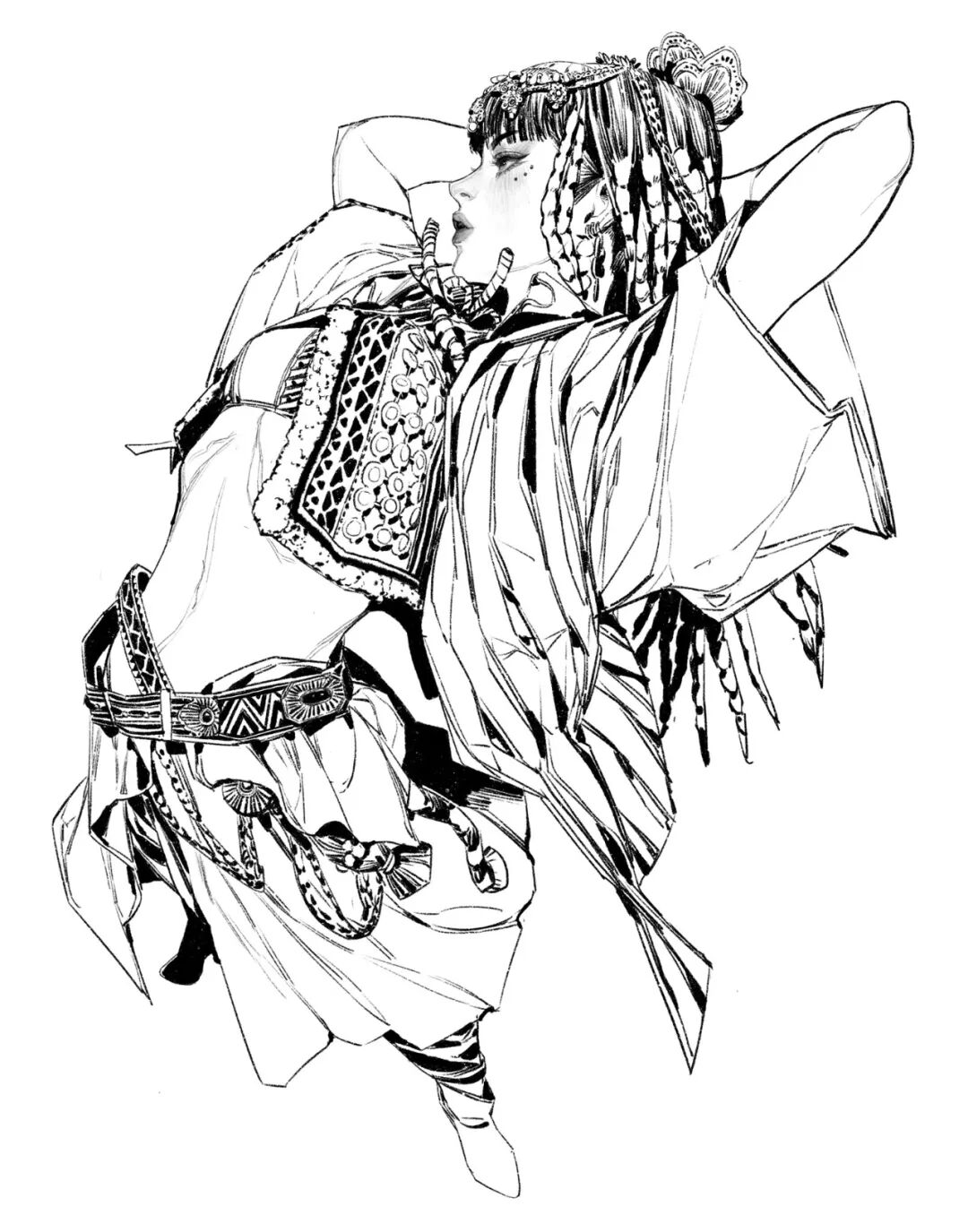 韩国插画师,作品多专注于人物角色线稿的创作,其插画图绘画基础扎实牢固,人体结构、比例精准透彻,在排线上也老练自如,角色有着非常强的表现力和真实感,这两年的作品更像是又突破了瓶颈期一般,更加精细,在局部与细节上有的放矢,尽显功底。