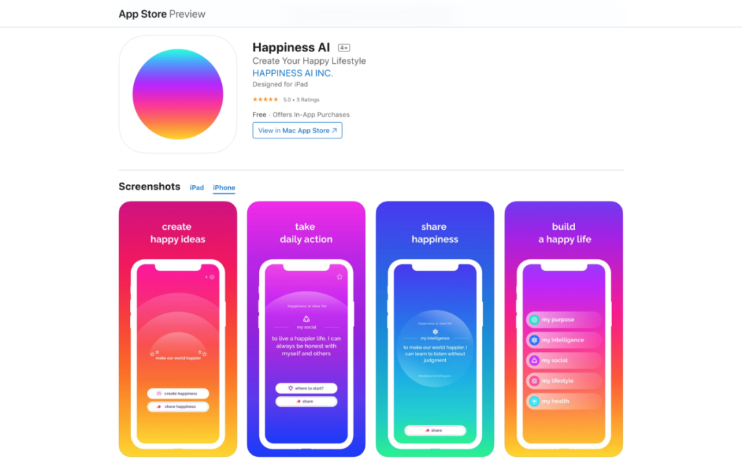 由于Ludmila Shevcheko还希望将"Happiness AI"作为一个明亮且独特的应用程序来为用户带来更好的印象。因此,她决定在屏幕截图中添加更多的渐变。