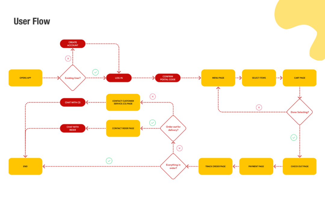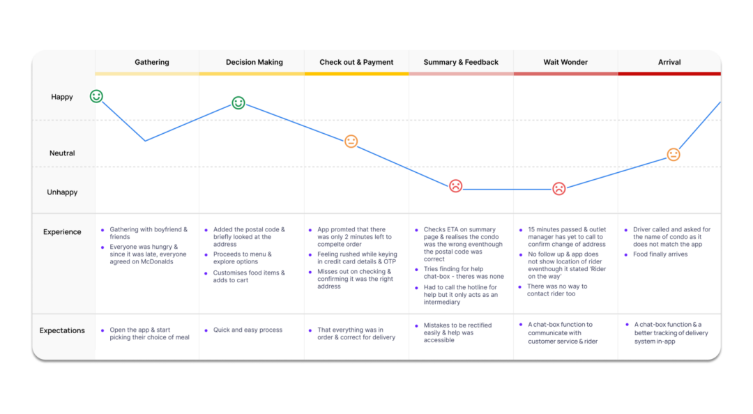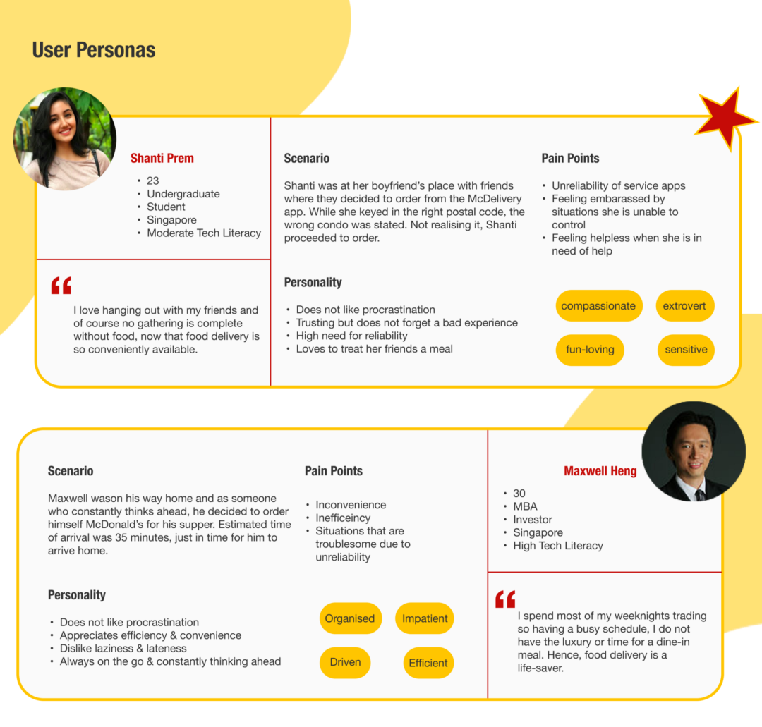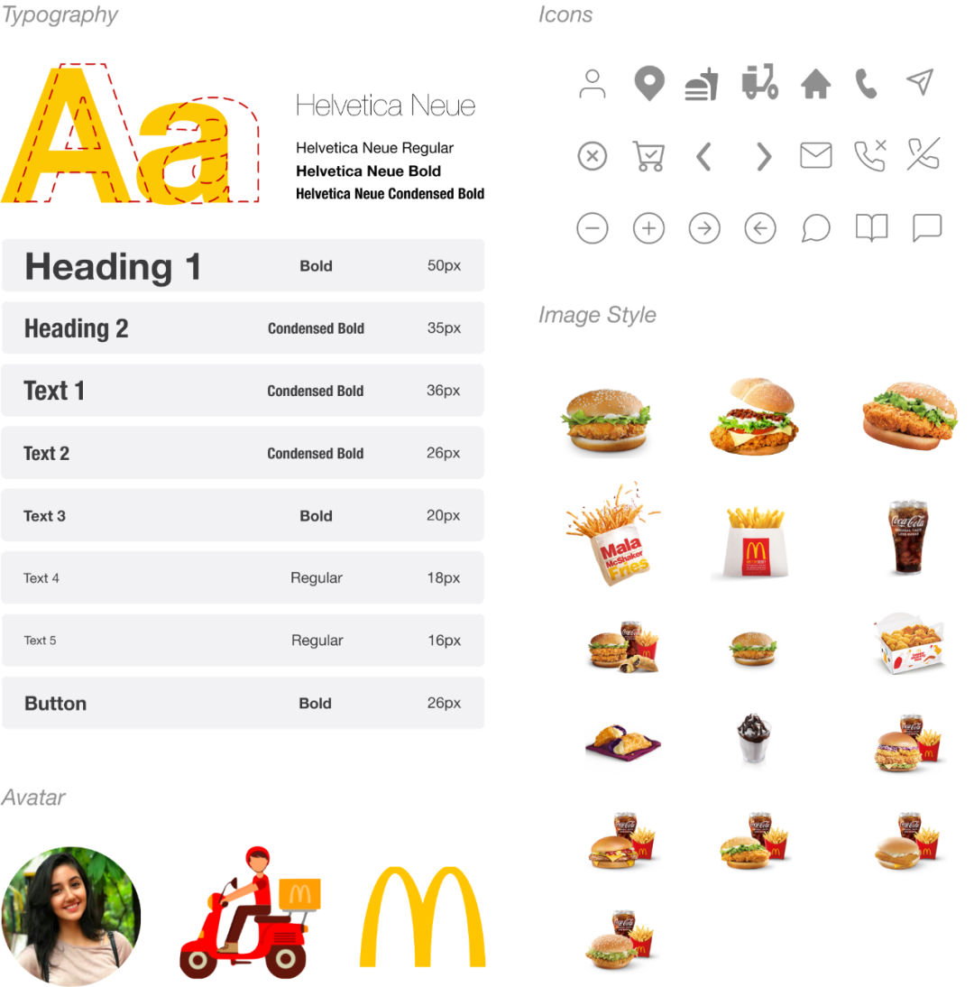 在这一案例中,设计者们作为UX/UI设计师,通过使用各种方法对当前的McDelivery进行研究,并进行了包括竞争分析、亲和图分析、线框图、风格设计等各方面的设计。