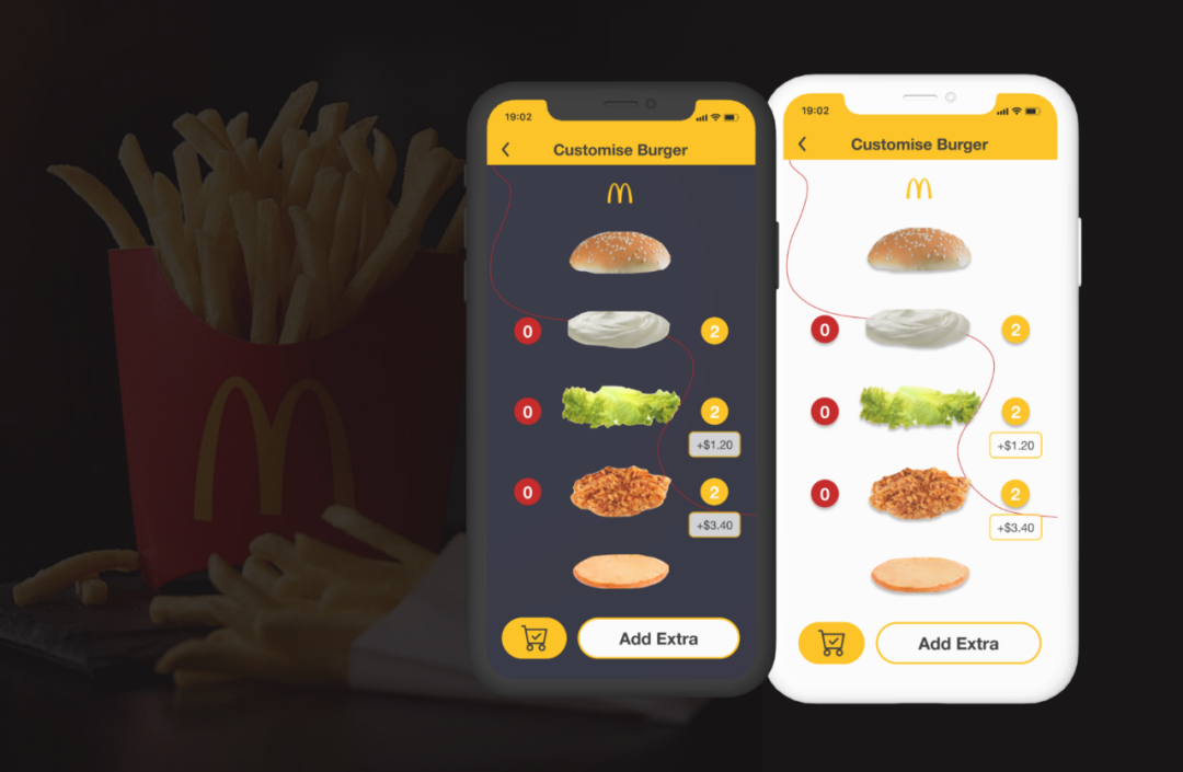 关于汉堡的定制,团队目前为用户提供了相应的视觉元素。用户现在可以看到他们最终的定制结果,而不是依靠想象。此外,用户所添加的每种成分所对应的价格也会清晰显示。
