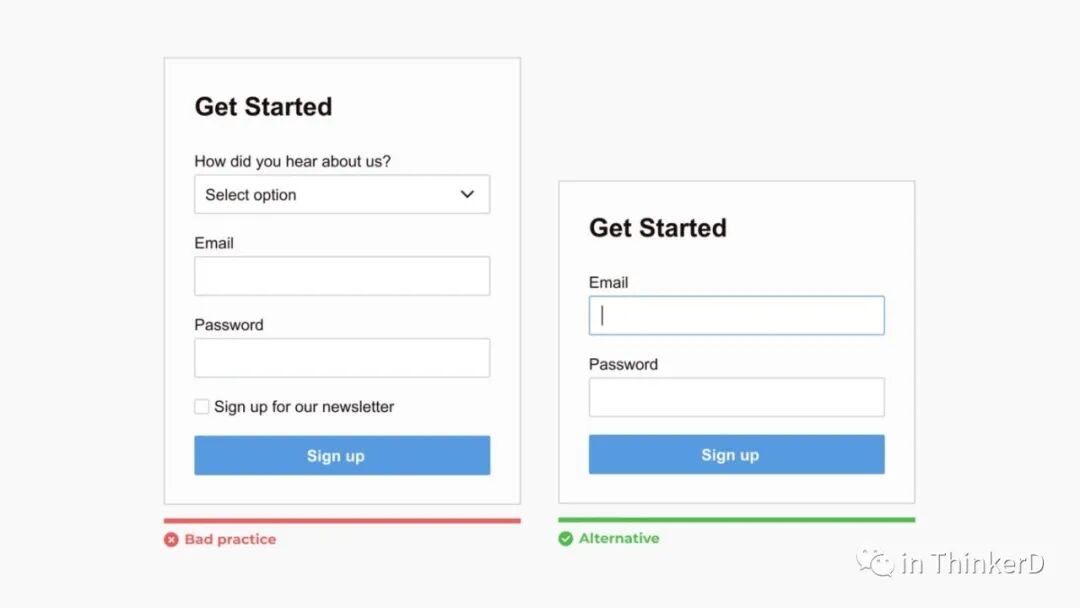 对于关键人物表单,比如结算表单或者注册表单,应当去除会分散注意力的部分、任何导致人们放弃填写的链接或内容。