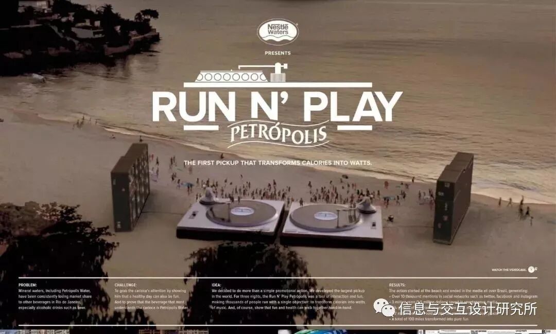 巴西的沙滩上,一个超级大的DJ装置(巨型跑步机)吸引了许多年轻人一起互动,感受Petrópolis带来的乐趣。通过在巨型跑步机上的运动,带动激光投影的视觉表现,催促人们在运动中释放自己的能量。在活动的三天时间,巴西雀巢的产品销售额整体增长了120%。