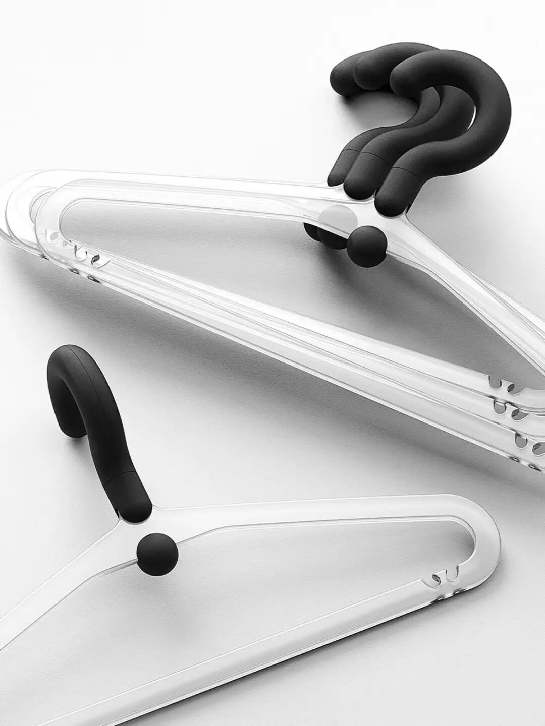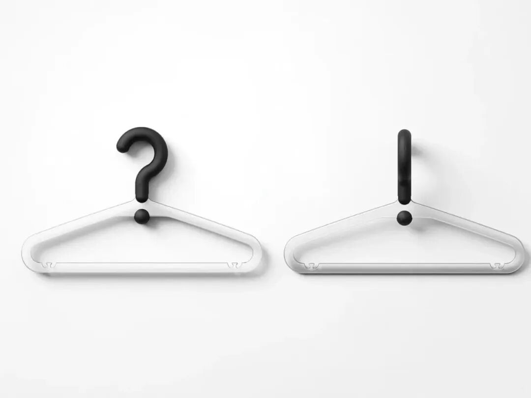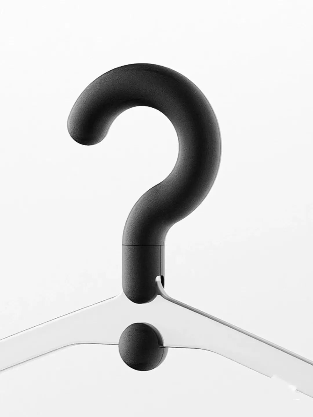 衣架的挂钩看起来像是个问号(正如当时纠结的你),但你一旦决定穿什么的时候,问号立马可以变成确定性极强的“感叹号”!操作简单:只需你轻轻地扭动挂钩确定即可。