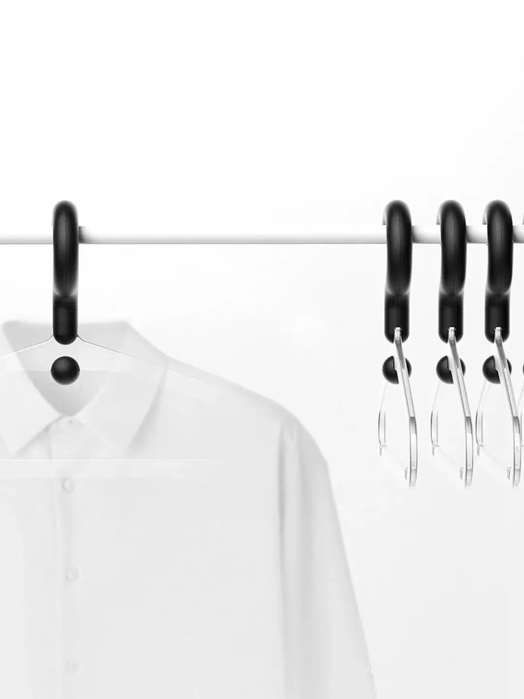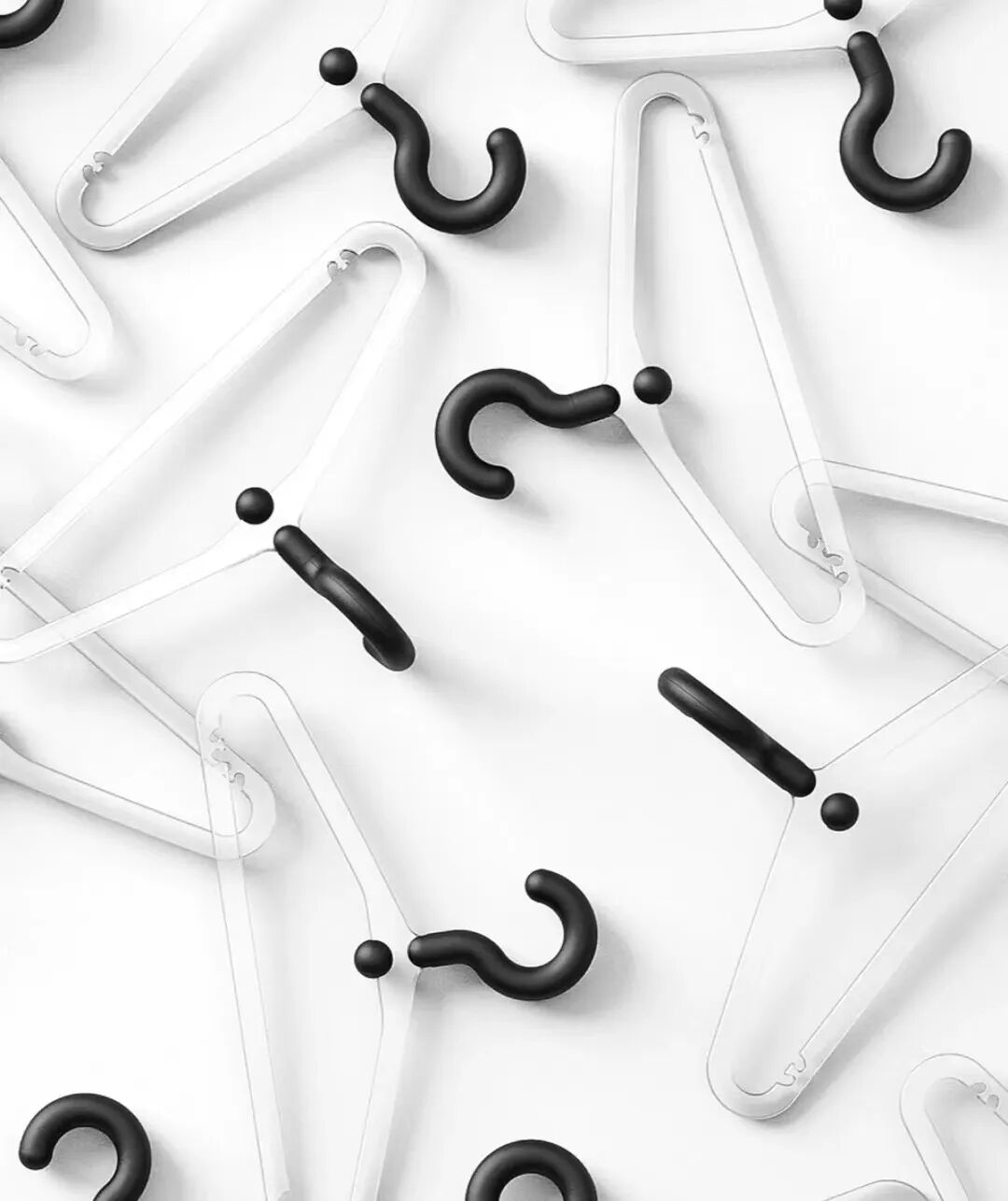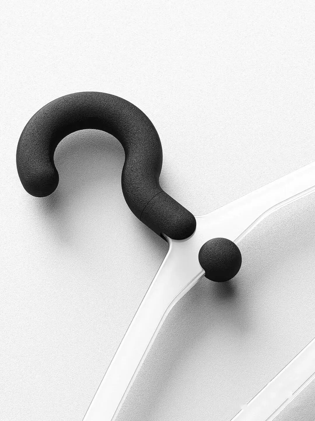 衣架的挂钩看起来像是个问号(正如当时纠结的你),但你一旦决定穿什么的时候,问号立马可以变成确定性极强的“感叹号”!操作简单:只需你轻轻地扭动挂钩确定即可。
