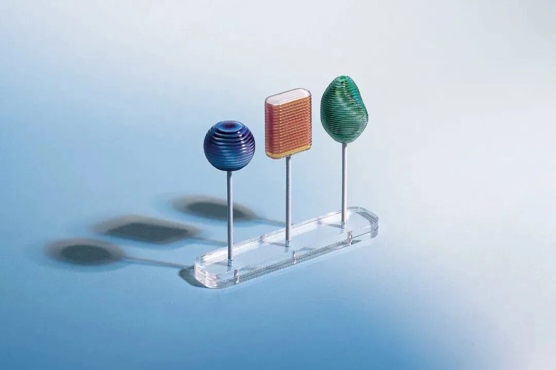 当从不同角度观察Loopop时,人们会看到连续的颜色变化,看起来像一个循环播放的数字屏幕,这是通过在传统的三色棒棒糖上添加透镜层来实现的。