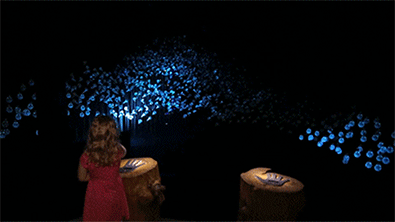 对于大多数人来说,夏天夜晚的萤火虫之光象征了梦幻般的童年往事。在蒙特利尔城市生命科学博物馆中,你就可以看到这样极附美妙的一幕,当地的两位艺术家Maotik和Etienne Paquette创造了一种诗意的,多媒体表现形式的夏夜风景,让萤火虫与观众们来了次近距离的“对话”,声临其境的场景展示出的原始自然生态系统。