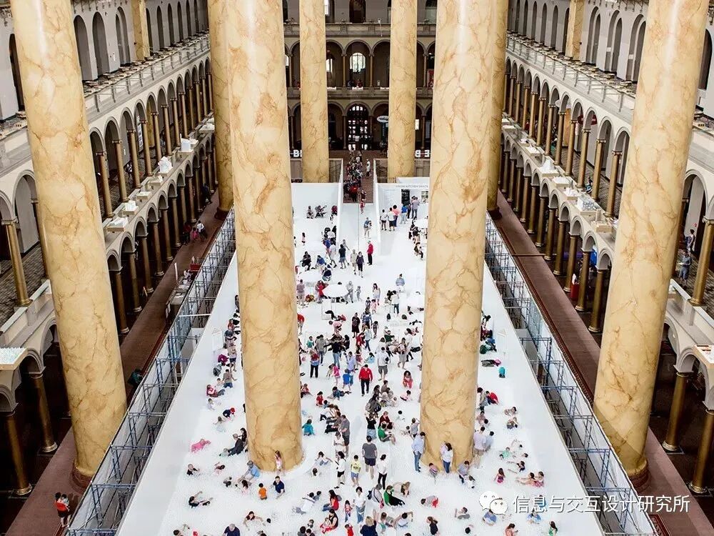 2015年,来自纽约布鲁克林的Snarkitecture工作室将回收了1百万多个白色半透明塑料球,铺满整个博物馆,形成独特的白色休闲“沙滩”。在48公尺长的“沙滩”里,人们可以放下束缚在泡泡球中玩耍,玩累了就侧边的海滩椅上歇息,这样既保护了环境,也为了让游客在炎热的夏天不用到海边就可以享受舒适的“沙滩”。