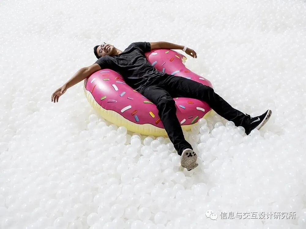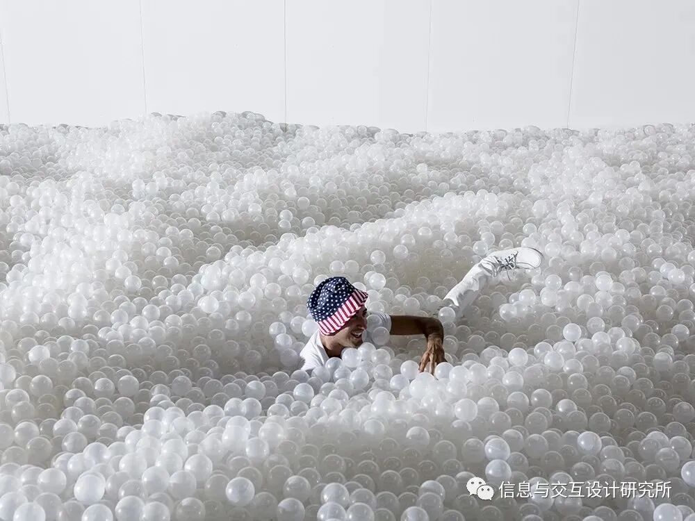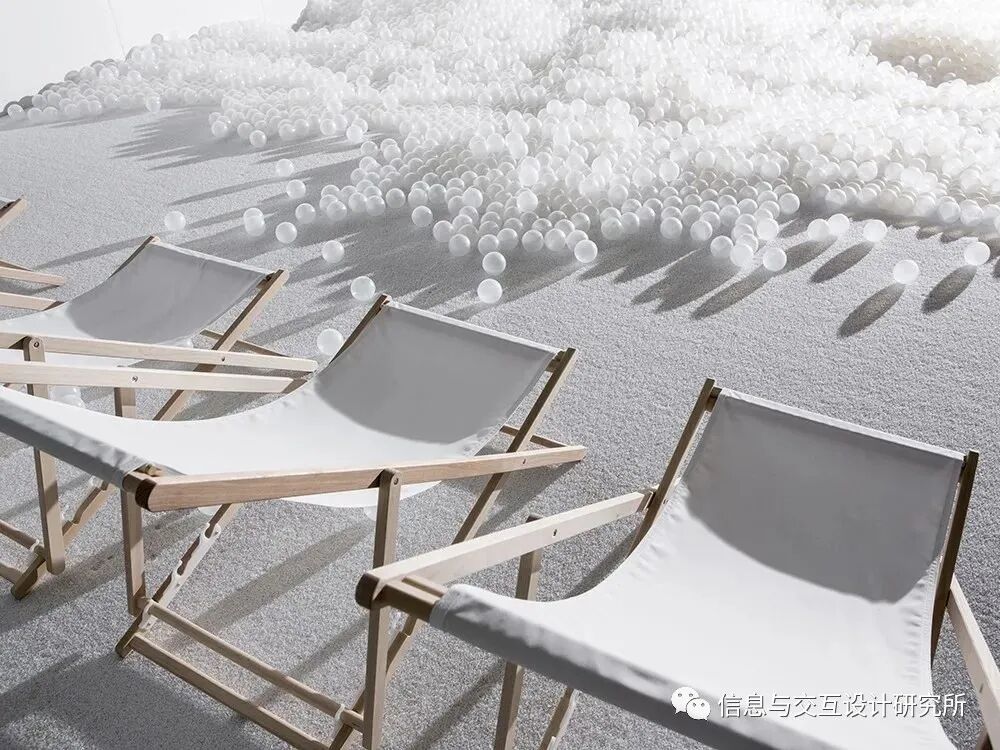 在进入全白色的封闭空间之前,游客可先爬上一个斜坡,地板将下降到海洋球的体验空间中。码头一直延伸到“海洋”里,人们可以站在空间的中心观看其他人。而在岛屿上则可以进行探索和发现,比如躺椅,雨伞和标牌之类的视觉提示让人联想到身临其境的海滩旅行。 海滩上的装置不仅能让人们从城市的室外夏日炎热中得到喘息,还能激发人们对建筑的思考。