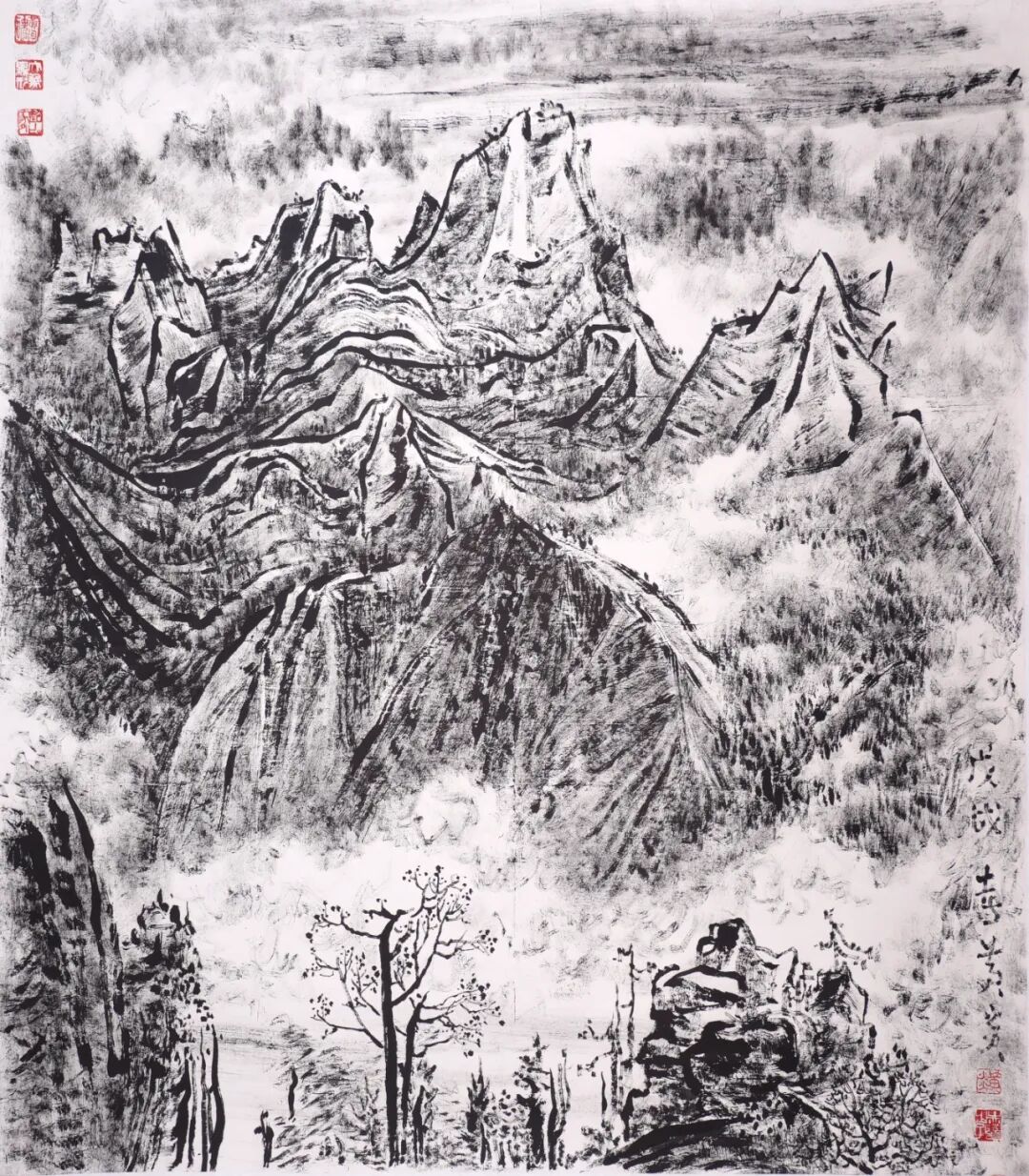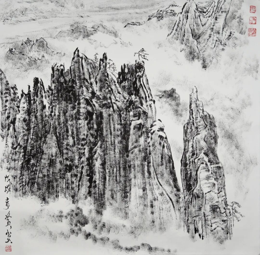 最新文章2023-03-30 焦墨山水画,含蓄,纯净,力量。 焦墨,是用宿而浓的墨,在画中要慎用,不可多用。在作一幅画将完成时用焦墨醒之,则精神倍增。山水画中,焦墨最多用在点苔点叶,是小面积地使用。但也有纯用焦墨作画(称之为焦墨山水),这是画家的喜好所致,别有一种情趣,但必须有较深的用笔用墨功力方可为之,不然,疏密不分,层次不显,漆黑一团,则成糊涂状。总之,焦墨最能醒目,但也是最难处理的墨法。 ·焦墨山水画的形成· 最早用单一焦墨来创作山水画的画家,当属明末清初的安徽画家程邃。 程邃,字穆倩,号垢区,别号垢道人,自称江东布衣,明末时出生,松江华亭人,祖籍歙县。程邃为新安画派中之集大成者,精金石篆刻,其山水画多用渴笔焦墨为主,水墨辅之。其用笔异常老辣,随手变化不着痕迹,达到沉郁苍古、荒莽古拙、苍面弥秀、枯中带润的境界,体现了画家笔墨运用的真本领和对自然界观察的独特视角和感受。在他的传世作品中,最能体现焦墨山水画风格的是《千岩竞秀图》 。此画为程邃八十三着“笔苍墨润,丘壑茂美”“干裂秋风,润含春雨”“卓烁古今”之形质与风骨。 程邃对焦墨表现手法的选择,也形成了他独特的绘画风格,与他要表达的内心思想感情及眼中的世界是相吻合的,他是清代少数有创造性、独特性的画家之一。在他的作品中,“骨法用笔”的笔性凸显,以焦墨渴笔作画,追求古拙、荒寒之趣,其难能可贵之处是将元人山水画中的渴笔法推向了一个新的高度。 程邃作品赏析 在程邃的水墨山水画中,融入了许多焦墨笔法,其所形成的水墨山水画形式,与新安画派其他画家并没有拉开很大距离。而唯独焦墨山水画,既保存了传统文人画大写意风格,也开拓了中国山水画的一个新领域,真正奠定了其独特的焦墨山水画艺术风格,也可称之为焦墨文人写意风格。同时,这也标志着焦墨山水画作为一个独立的山水画形式已初步形成。 程邃作品赏析 ·焦墨山水画的发展· 明末清初画家程邃焦墨山水画的出现,则是焦墨山水画作为独立的山水画形式初步形成的一个开端。及至清代,焦墨枯笔、渴笔的技法应用更为丰富成熟。弘仁、梅清、石涛、任伯年等均在各自的山水画作品中,不同程度地运用了这些焦墨技法。现代有齐白石、徐悲鸿、黄宾虹、张大千、傅抱石、李可染、陆俨少、黎雄才等,他们在中国画的继承与发展过程中,不仅创作了大量具有中国画传统与时代风貌的艺术作品,且亲历教学实践改革与理论探索,留下了许多宝贵的经验和艺术财富。同时,他们在作品中对于焦墨技法的深人实践与运用,也为焦墨山水画的技法完善提供了丰富的养料。上个世纪七十年代,当代美术大家张仃,大胆地运用纯焦墨这种最简单而朴素的语言,去直接描绘大自然,创造出了丰厚而丰富的优秀作品。 黄宾虹焦墨作品赏析 ·焦墨法的审美特点· 焦墨是最简单而朴素的语言。在干、湿、浓、淡、焦、宿六种墨色中,尤以焦墨为最黑,最重,同时也最含蓄,最为纯净,也最富有力量感。 焦墨少了墨的变化,所以用焦墨作画时,很容易显得板滞和枯燥。为解决这个问题,可以加强对自身笔的修炼,体会笔的感觉及变化规律。正所谓"书画同源",可以练习一些魏碑和篆书提高用笔,有利于焦墨的运用。因为焦墨较为浓稠,表现出来的效果也较为雄健阳刚。 黄国强焦墨作品赏析 焦墨有浓淡之别,不能提起焦墨就以为是如烧焦般的黑浓枯滞。 焦墨的特质,即一定的精神内涵。焦墨的这种重简的语言以及它所具有的独特内涵,它根深于远古,却完全是符合这个时代。 焦墨法。是以焦墨、浓墨作画的一种方法,是近乎于燥墨的法。焦墨在古代绘画中的运用,只是在一幅画画到最后时才用,是以点苔或个别地方勾勒,使画面更加苍劲、浑厚,即“醒画”。 黄国强焦墨作品赏析 焦墨法,包括“枯墨”、“干笔”、“沙笔”,也叫“渴笔”。这种笔 墨画在纸上,线条往往出现很多细微的飞白,斑斑驳驳。焦墨易见骨,湿墨多见肉,有骨有肉,才为得宜。焦墨法最忌迟钝、滞涩。古人云:“干裂秋风,润含春雨”,其目的是追求“润含春雨”的艺术效果。没有“干裂秋风”的衬托和对比,就不会出现滋润的笔墨和复杂变化的丰富层次。近代垢道人程邃、个山僧和现代的张仃尤善用焦墨、渴笔,其特点是枯焦而华滋。 黄国强焦墨作品赏析 ·焦墨法的技法特点· 1、用焦墨作画是简单的,它省去了墨的调和,也省去了传统技法中惯用的破墨、泼墨和积墨等墨法。这是它的优点,符合爽荡的性格。 焦墨是极端的,用焦墨作画是高度概括而极尽夸张的。 关于焦墨法的一些画家语录焦墨是局限的,但往往这种局限形成了它的特色。——张仃 张仃焦墨作品赏析 2、运用焦墨要注意些什么呢?首先,焦墨以润出之。如何使焦墨自身能润起来,这让人有些费解。有一位老画家说过,点线笔画能在宣纸上透出纸纹,恐怕只有白石老人和黄宾虹先生二位能够做到。尤其是焦墨笔线,能够在渴毛苍枯之中见出纸纹(不是帘纹),方能显出润的感觉,此非笔力过人不易达到。梅墨生先生讲学时形容用笔入纸的感觉如牛舌卷草,绵劲处藏有韧性。其中道理,须画家细细揣摩演练。 其次,焦墨有浓墨、淡墨之别。不能提起焦墨就以为是如烧焦般的黑浓枯滞,受焦墨字面误导,而入焦墨误区;该浓处,则墨色用深;该淡处,则墨色宜浅。浓淡不分,
