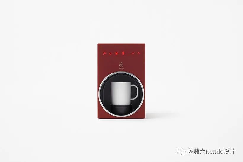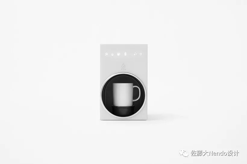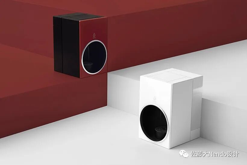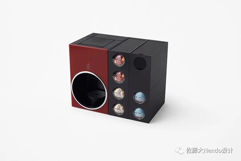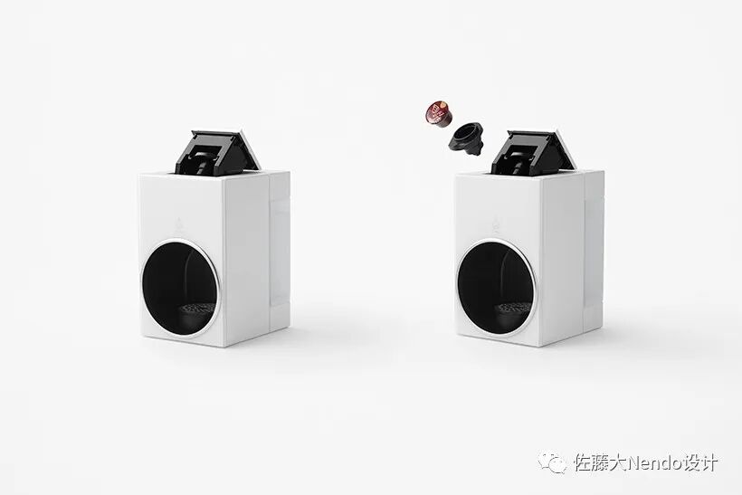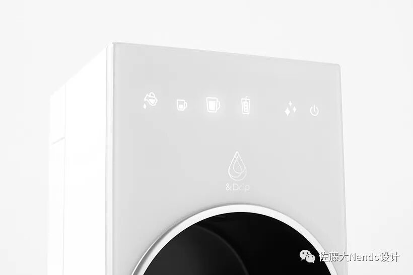 机器会根据不同饮品的自动调节水温。机器内热水均匀流动的机制使得滴漏咖啡机内部的压力小于浓缩咖啡机,保证了饮品更温和的口感,更浓郁的香气,同时减少了苦味和刺激性。这款机器还可以提供茶和冰咖啡。最重要的是,这种独特的压力机制可降低冲泡过程中产生的噪音,得益于这种“安静”,这台机器能够用于客厅等地方,而不仅仅是厨房中使用的烹饪工具。主体被塑造成一个简单的立方体,它的背面也被做得很像样,这样它就可以放在房间的中间,而不只是靠墙。正面的圆形“口”可以防止咖啡在滴的过程中溅出。除此之外,为了保持喝咖啡时的放松感,胶囊槽盖的移动被微调为缓慢打开,给人一种温暖的感觉。操作按钮使用了触摸面板,这样在不操作的时候就看不见了,而且界面设计为柔和地闪动,不会让人觉得你在赶时间。此外,采用内置扬声器和对声音也进行了特殊处理:当咖啡煮好警报响起的时候,增加了点击声音为了模仿“推”按钮的感觉,或者当水已经耗尽,用轻柔的吉他声音。