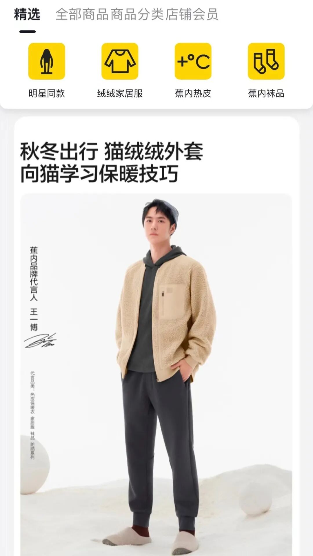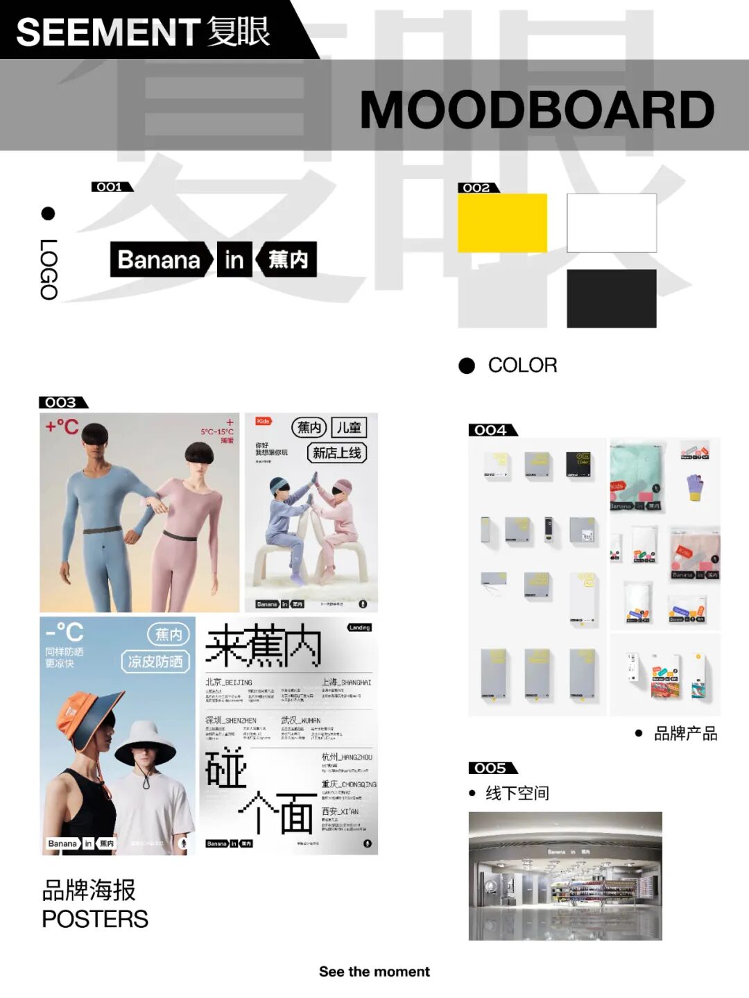 在确定方向后,蕉内在各个品牌触点都应用设计延续统一的美学。