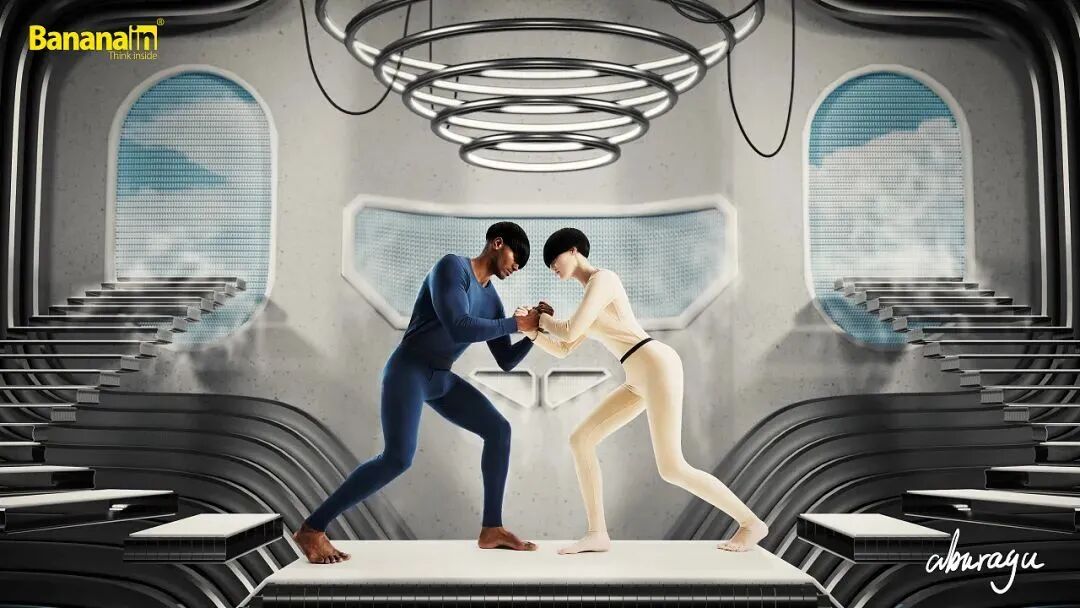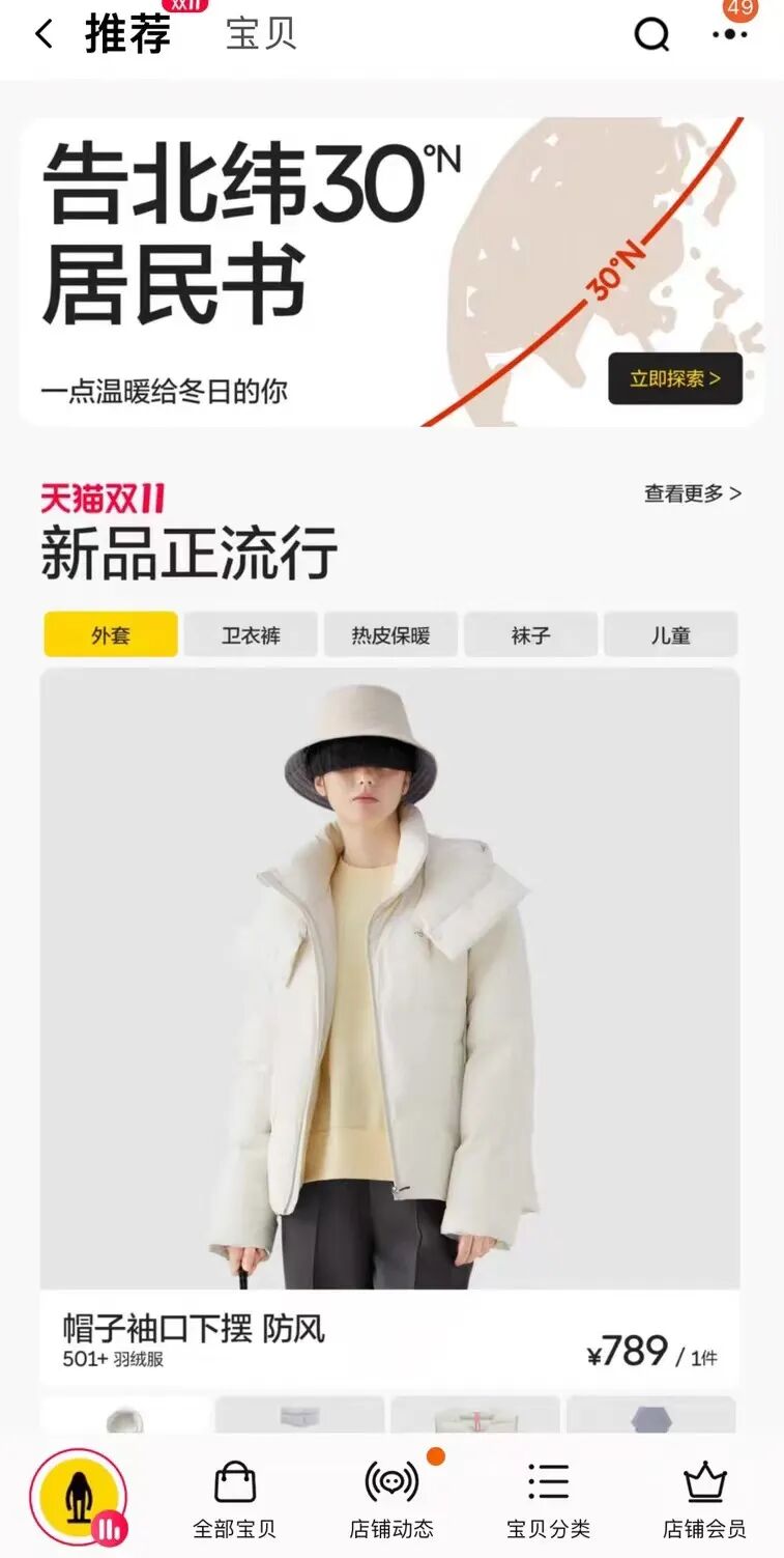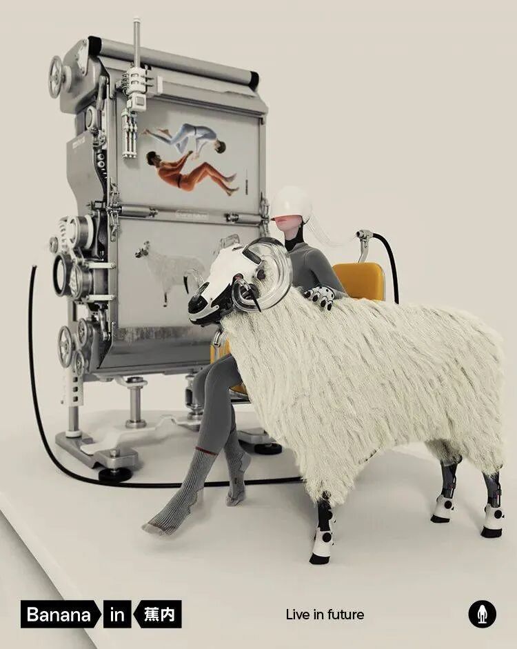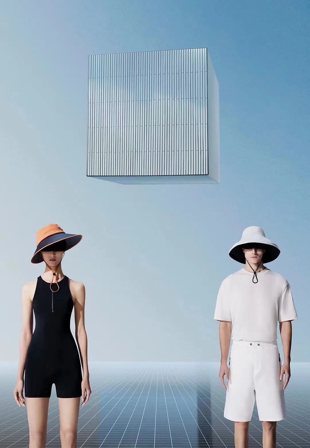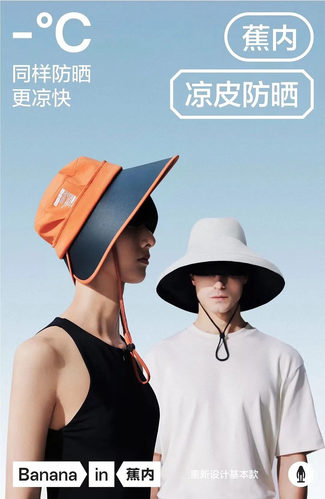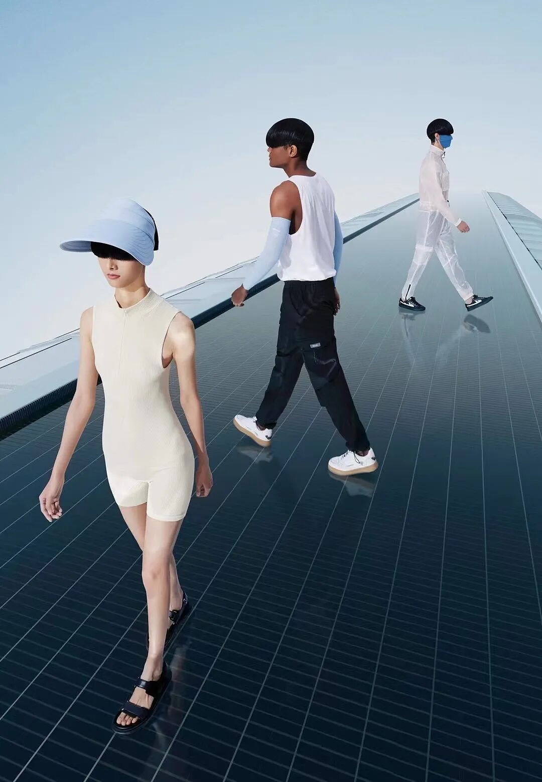 据品牌创始人说,遮挡住模特的刘海,是为了避免干扰浏览者的视觉注意力。这也符合蕉内未来功能风格的定位。