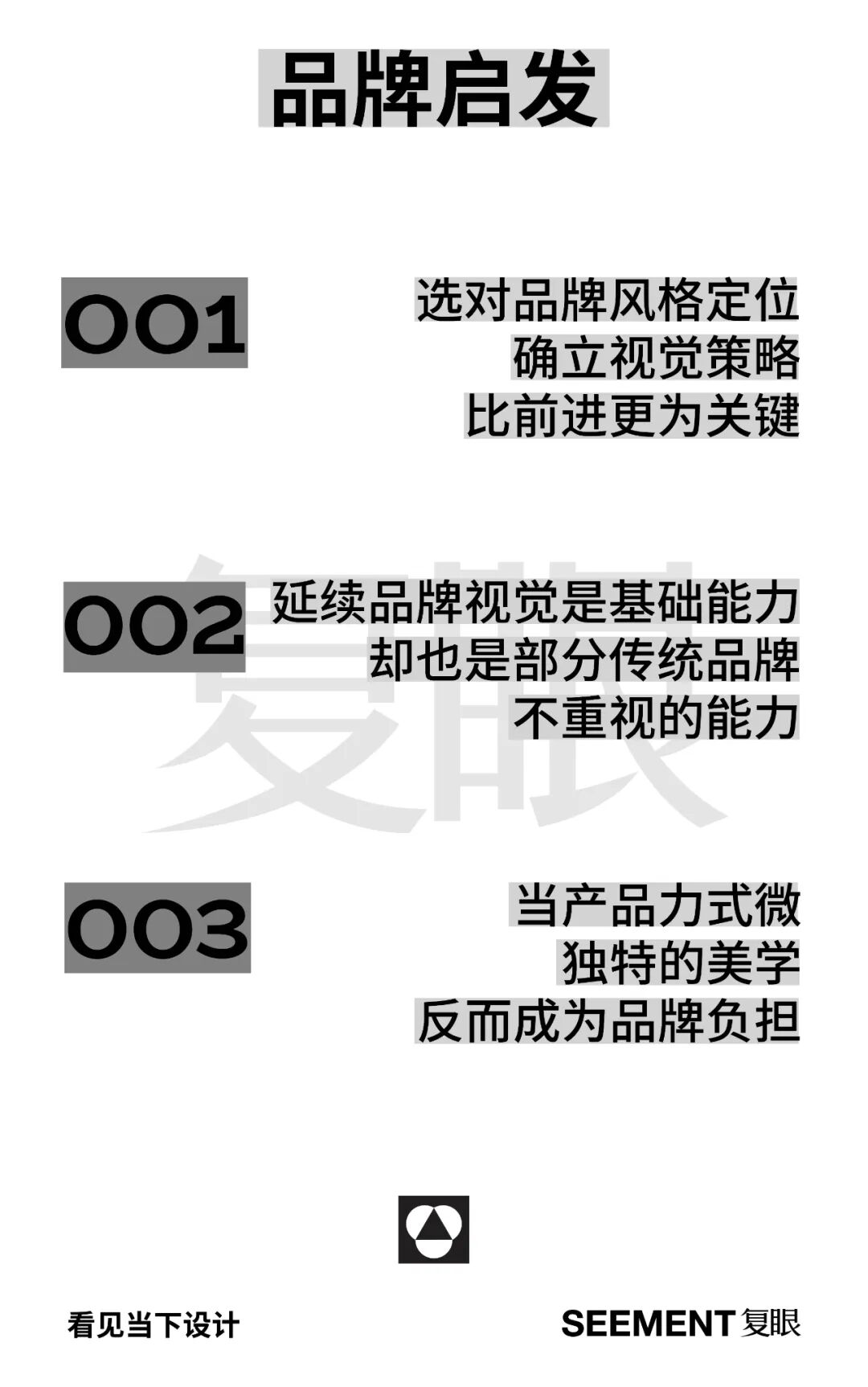 这一点看起来很基础,但往往是很多品牌所忽略的,聘请了好的设计团队为品牌做前期设计,却在延展、应用落地时,让设计形同虚设。总而言之,或许还是品牌对设计的重视度没有那么高,同时这也是品牌负责人在商业层面上对于设计的理解和认知所决定的。