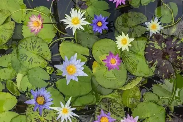 睡莲是花友们比较常见的水生植物了,选择的品种看自己,它们通常是在下午或是晚上开花,这里说的是在水里适当种一些水盾草之类的水草,用来帮忙清洁水和提供氧气。