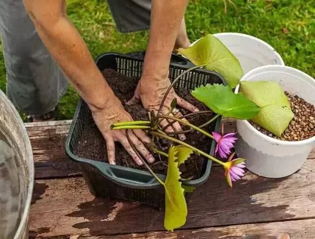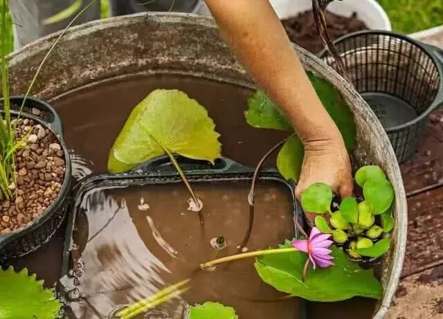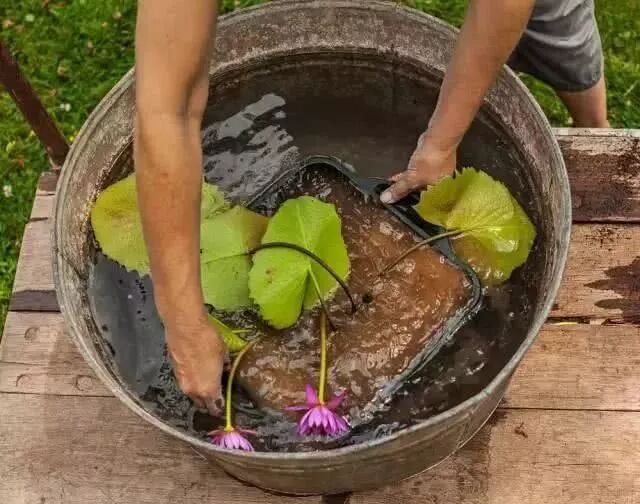 步骤4:慢慢把种好的睡莲放到水面下,是不是和你想象的方法有点差距?