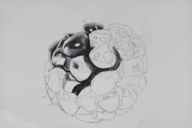 第一步画出桑葚的线稿,但是需要各位画得详细一些,因为不把细节画好,很容易在上色的时候把这些细节部分给忽略掉。